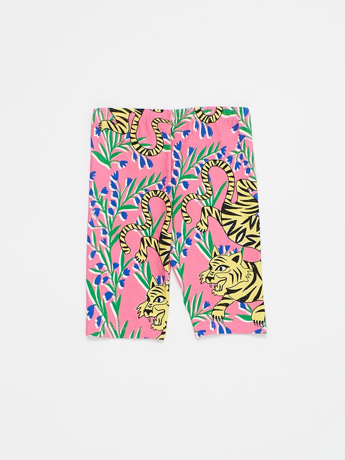 These fun Pink Bengala Leggings by Maison Mangostan are a comfortable Cycling pant featuring our green, blue and white carambola all-over print. Elastic waistband for the perfect fit. Made in Portugal. Composition: 95% Organic cotton, 5% Elastane This item is normally sized, we suggest you select your regular size.