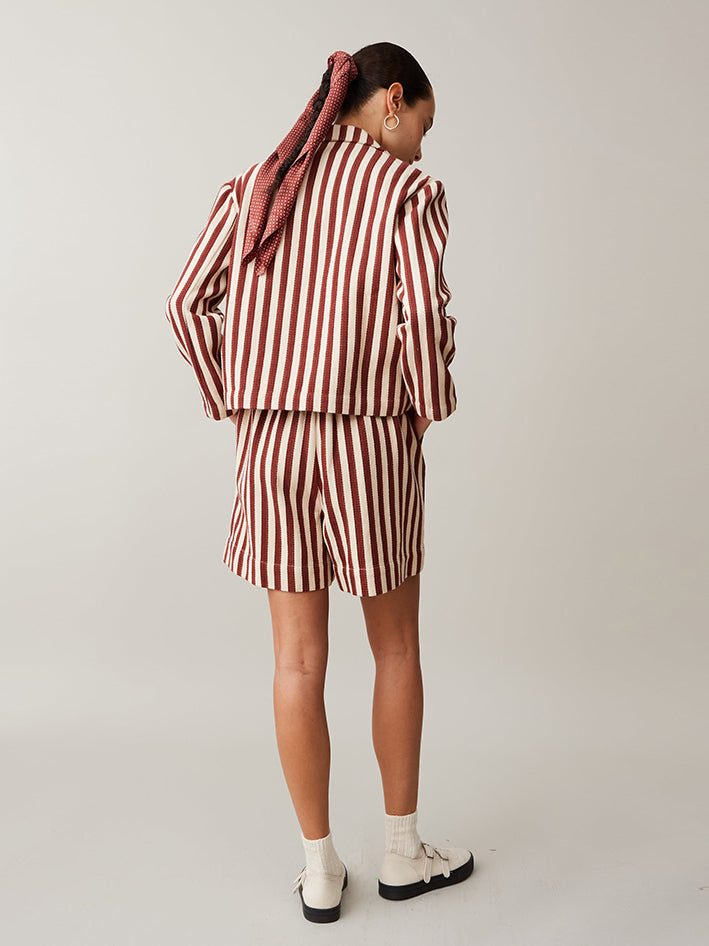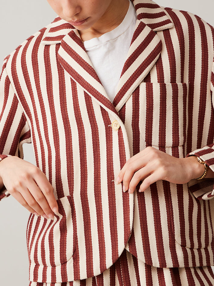 With two front buttons for closure, a notched collar and curved hem, the Bernay Jacket feels slightly tailored while having an easy and swingy fit.