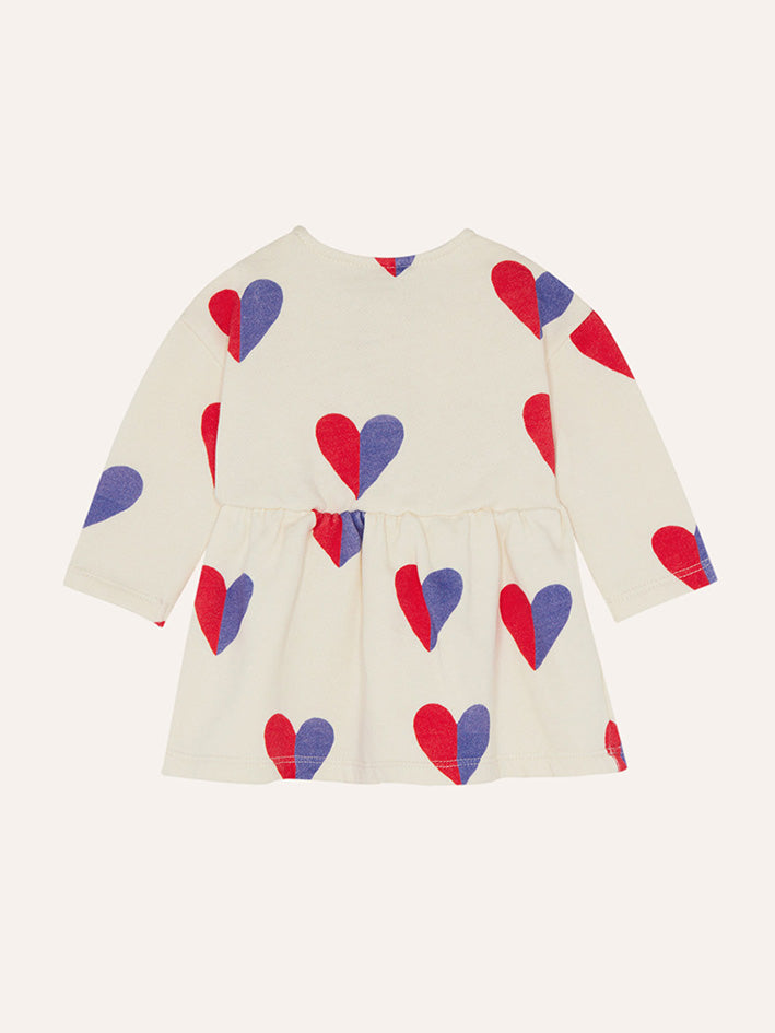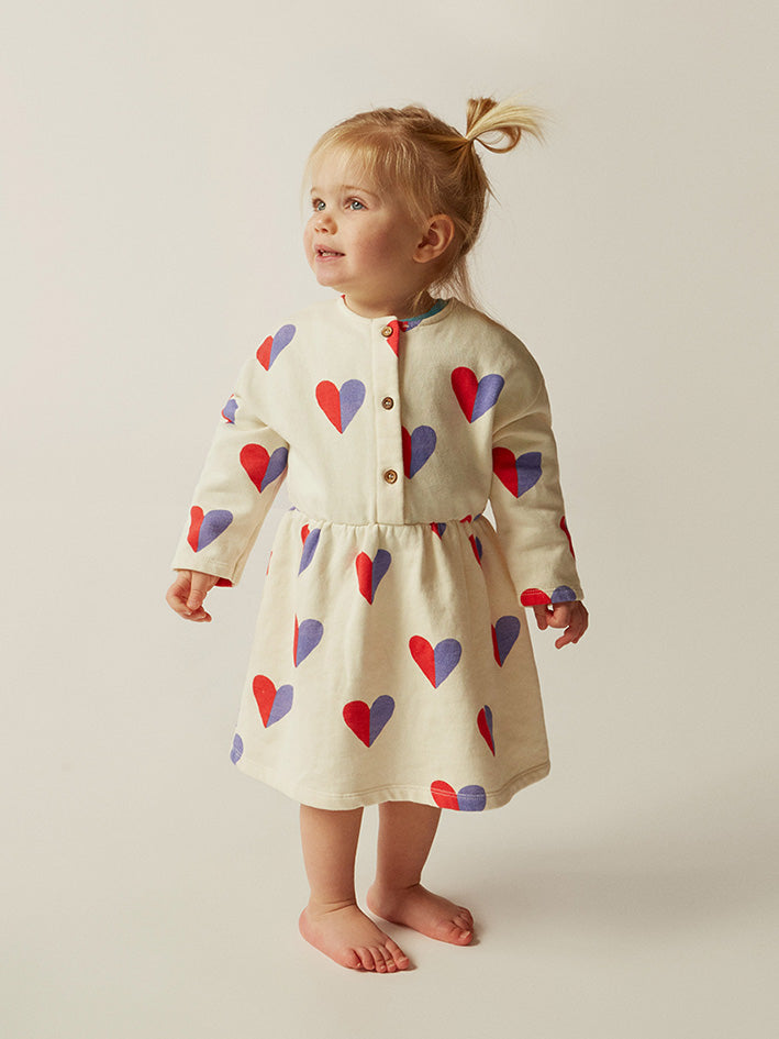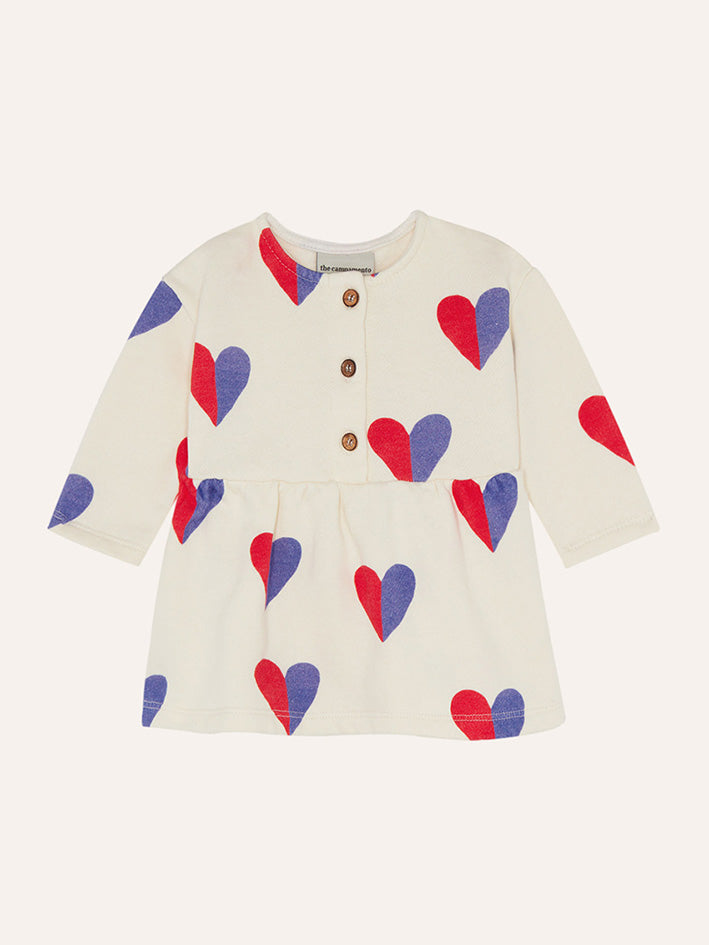 Bicolor Hearts decorate this Dress in Ecru from The Campamento made in fleece 100% cotton. The quality is brushed inside making it more comfy and soft. With a loose fit and open in the front is the perfect garment to complete a winter wardrobe.