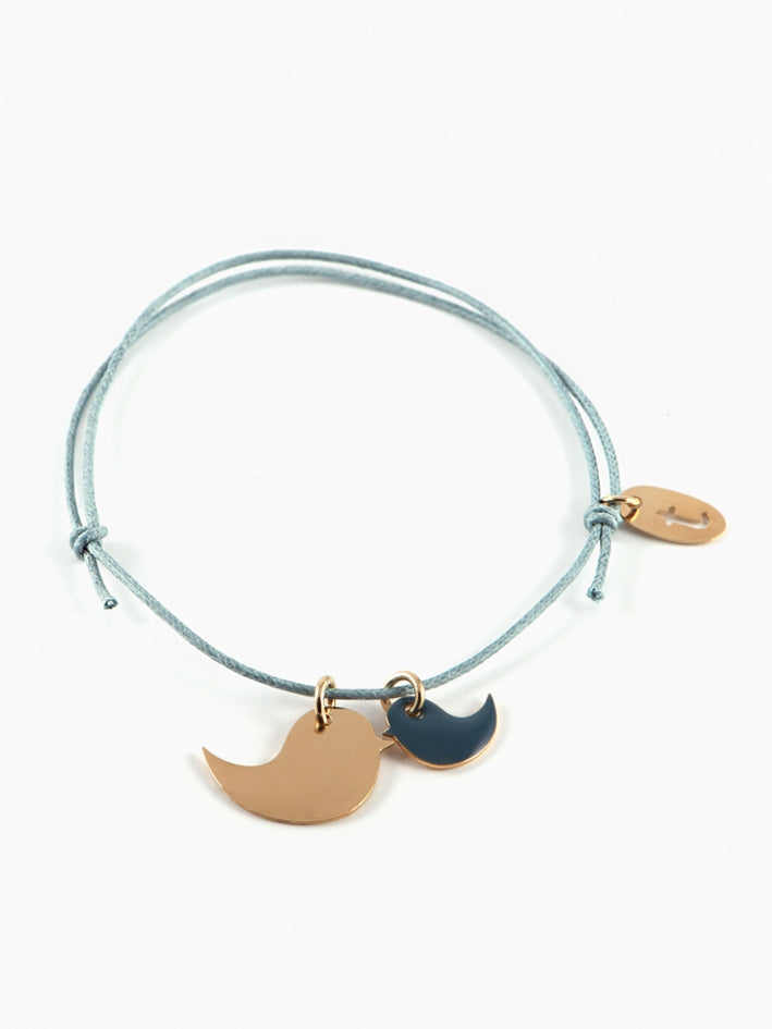 Pendants in gilt brass (24K gold) and colored resin on cotton thread Adjustable Bird Bracelet by Titlee Link length : 11in (suitable for children from 5 to adults). Made in France