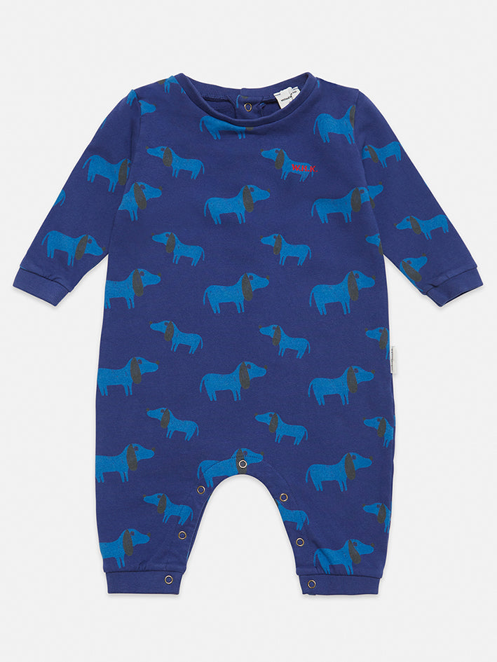 Wrap your little one in comfort and charm with this Weekend House Kids Blue Dog Allover Baby Jumpsuit Dark Blue.