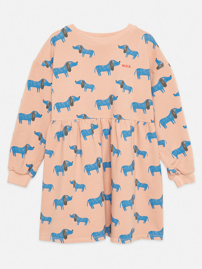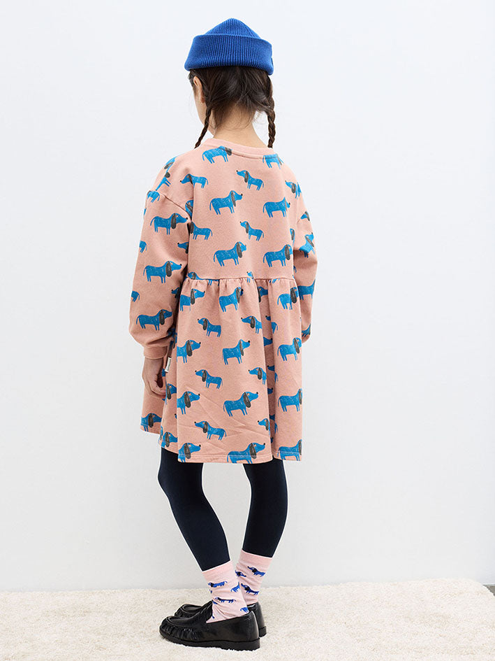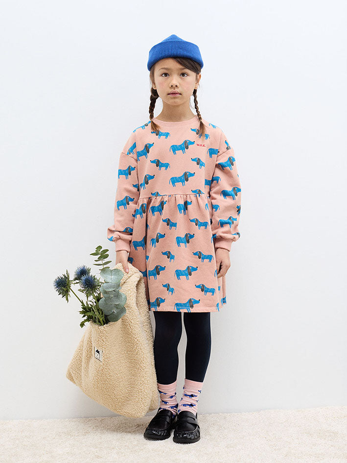Weekend House Kids Blue Dog Allover Dress Dusty Pink is full of charm and playful spirit!
