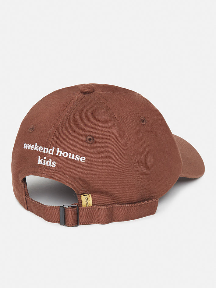 Weekend House Kids Blue Dog Cap Brown. A cool and casual cap crafted from organic cotton, featuring a charming blue embroidered dog and the Weekend House Kids logo.