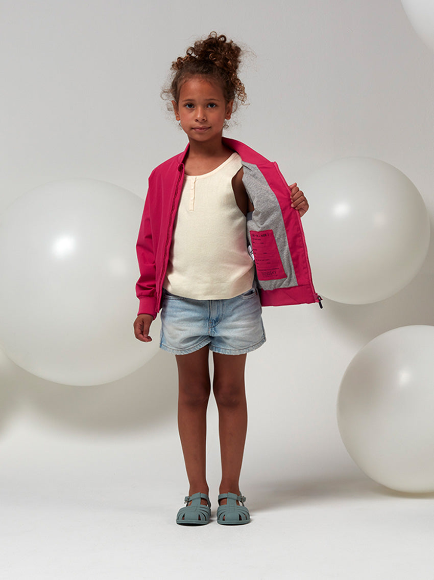 Meet the BRIGHT MONKEY in Cabaret Pink by Gosoaky. This short jersey lined jacket has ribbing at the collar, cuffs and hem, which creates an effortless and casual look without losing sparkle. Shine bright little monkey! Water Repellent High performance material COTTON LOOK Penguin logo patch on front (patch not applied on size 146/152 and up) All their garments are BPA + AZO free and certified with all child safety regulations No animals are used for these products