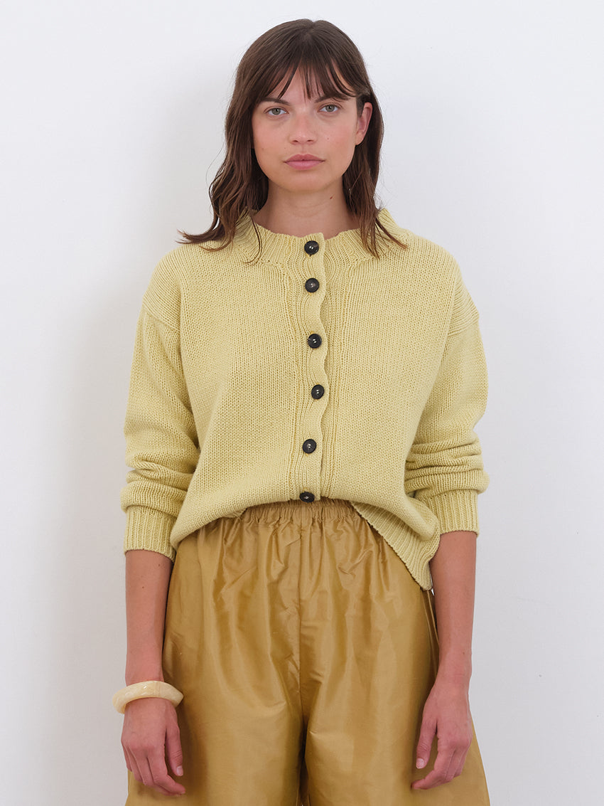 The Cawley Rosa is a soft hand knitted Cardigan made of 100% British Lambswool.