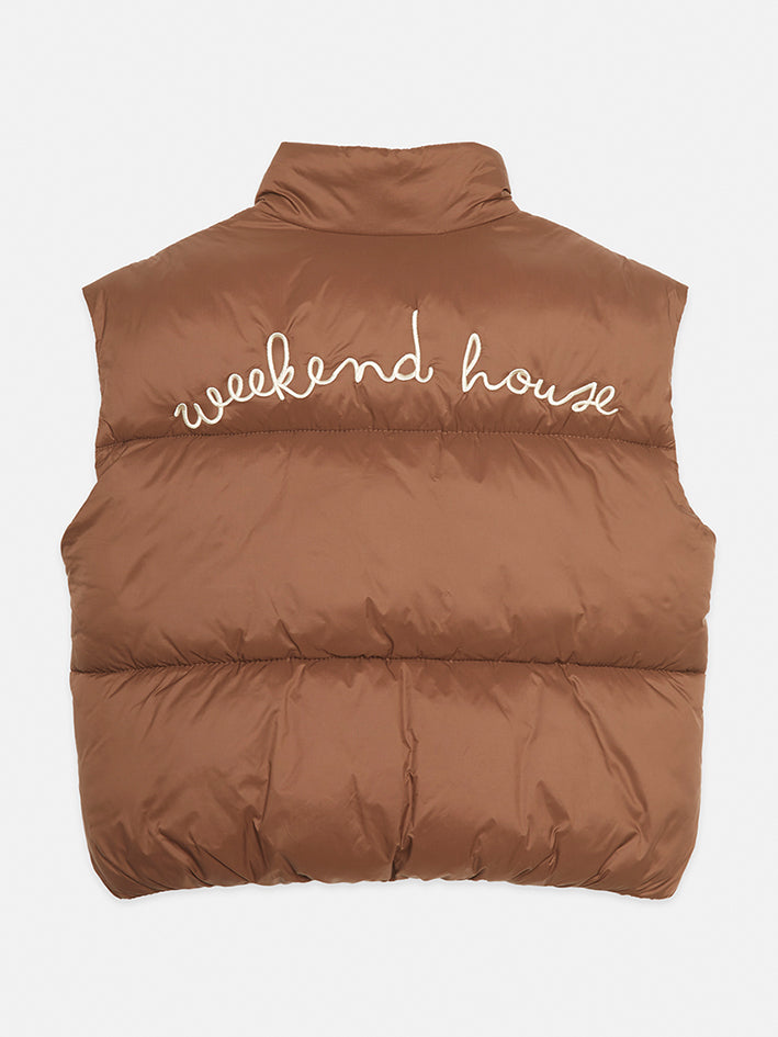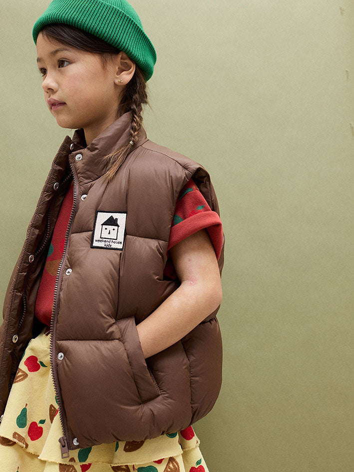 Keep your little one warm and stylish with this cozy Brown Puffer Vest from Weekend House Kids. Designed for layering, it’s made with soft padding and a high collar to keep out the chill.