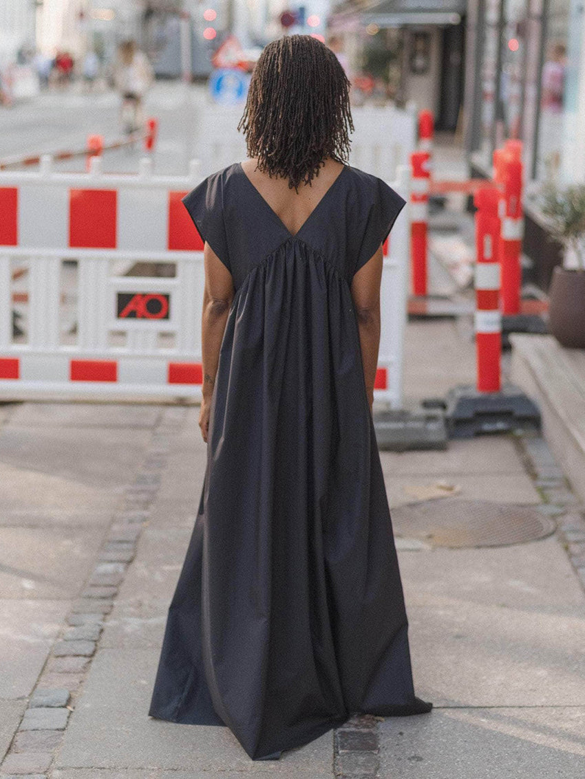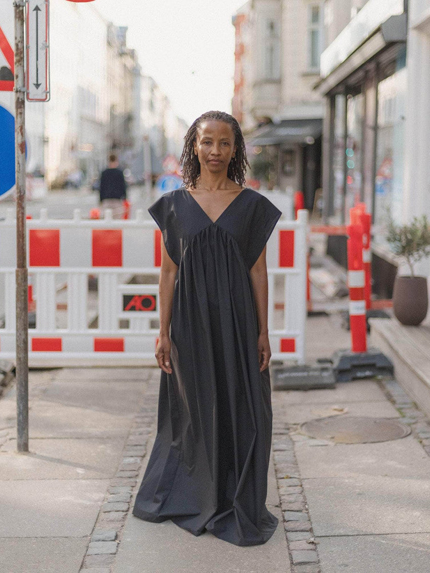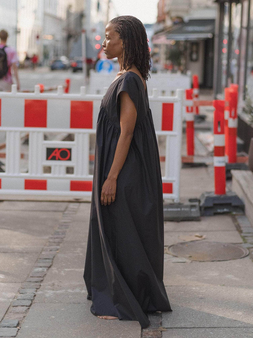 Organic cotton poplin Cable Dress in Black by Baserange.