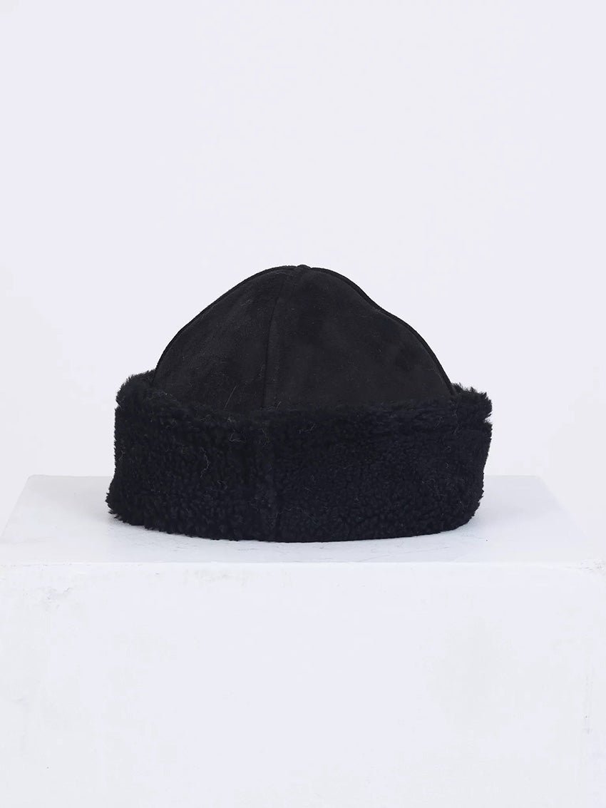 Cawley's classic sheepskin cap, in a Suede back with curly hair interior.