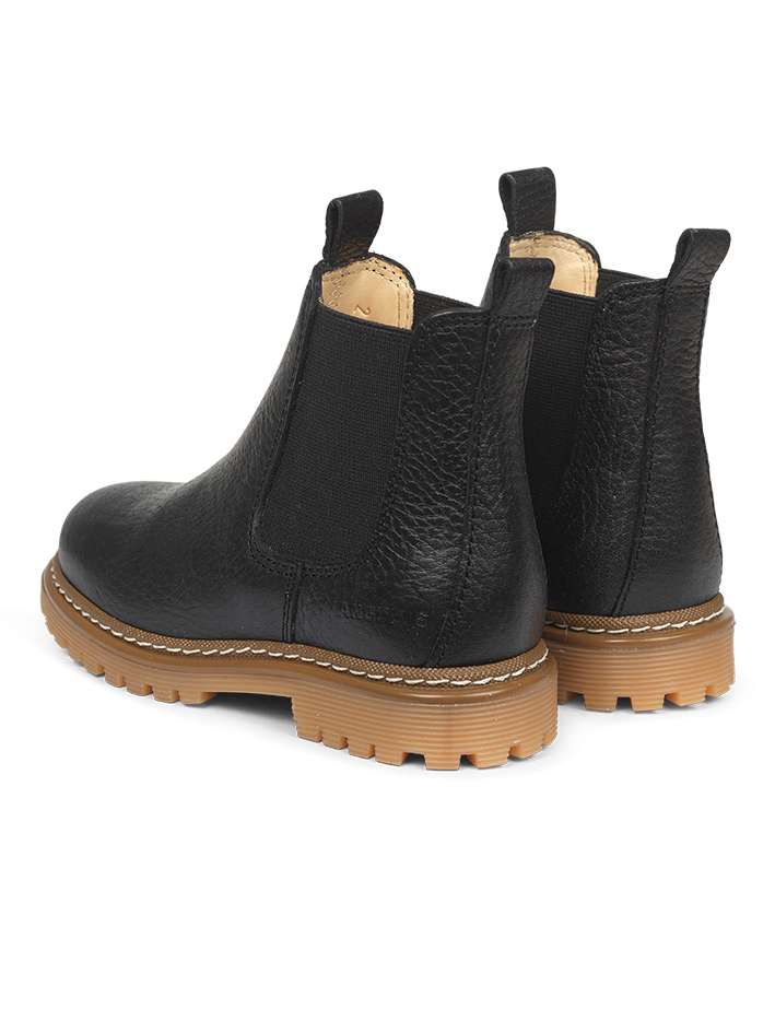 The Angulus Chelsea Boot Tracksole in Black is High Top, Tab, Elastic band(s), Non-slip soles, Round toe, Good foot support, Comfortable Handmade Upper : Leather, Sole : Rubber Chromium-free