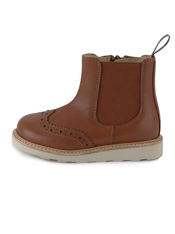 Francis classic Chelsea Boot Chestnut Brown is perfect for stepping out on the King’s Road or the playground, features an inside zip fastening, heritage brogue punch detailing and the Young Soles signature lightweight EVA sole. Linning : Leather Outsole : EVA/Leather Upper Material : Leather