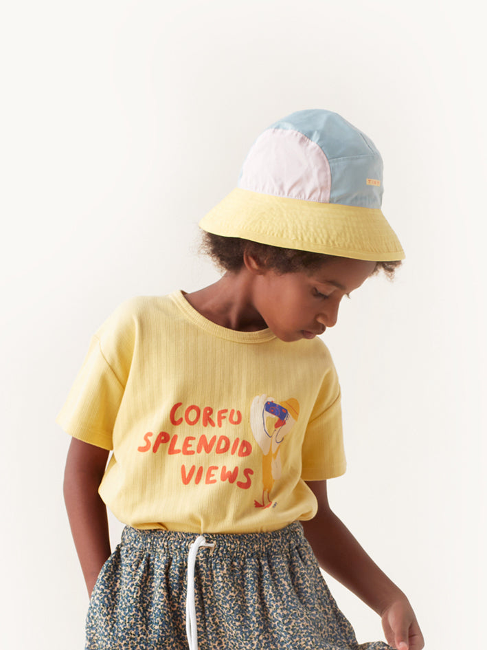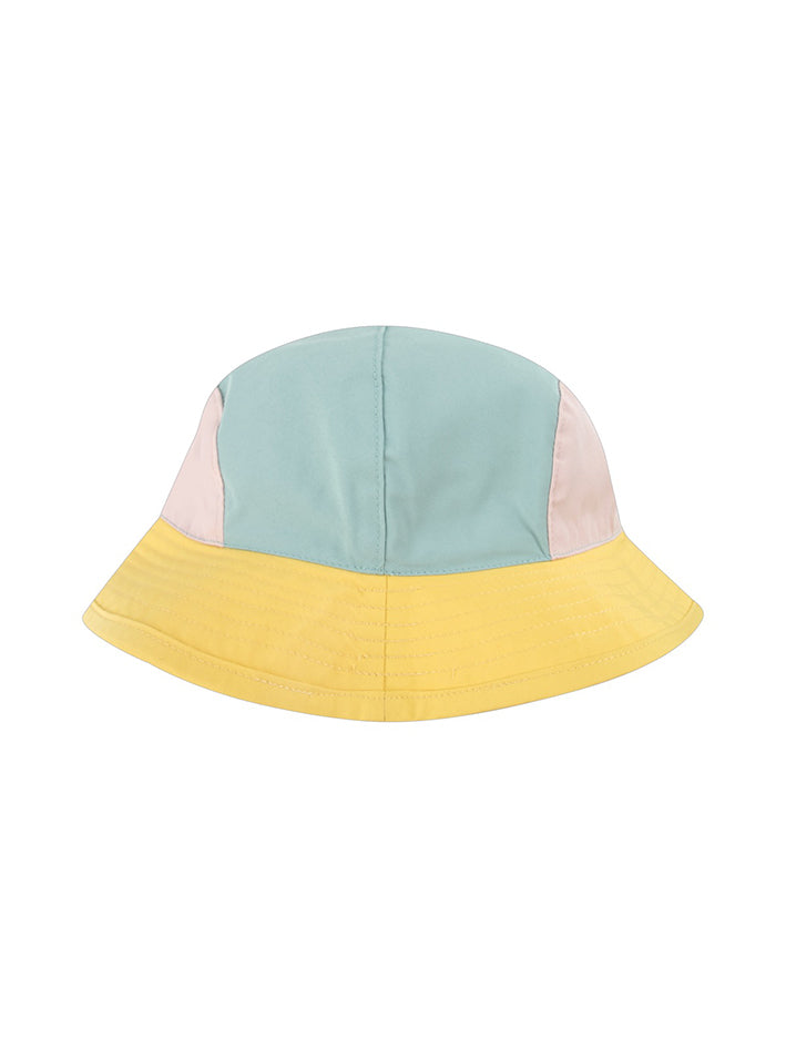 Never enough colors. Pastel Lilac, Cadet Blue and canary Color Block Bucket Hat by Tinycottons. Made in tech cotton touch fabric, it's perfect for light weather conditions, made with waterproof fabric (3.000 mm H2O), it's windproof and breathable. It comes with eco PFC-free water repellent finishing.. Lilac fun mesh lining. Made in China.