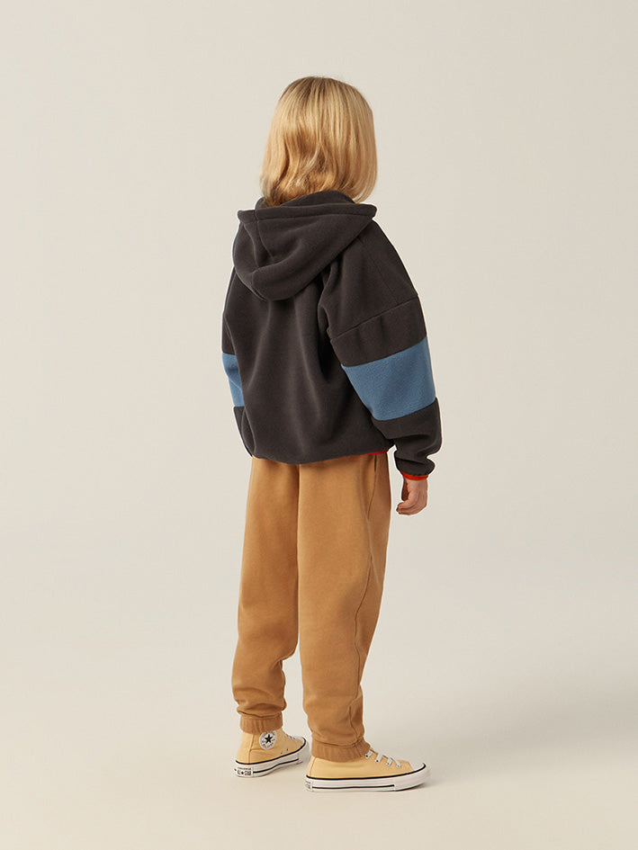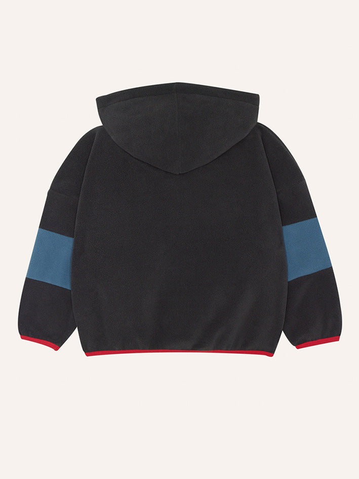 This Color Block Polar Zipped Sweatshirt from The Campamento is the perfect garment to stay warm and comfortable all winter. In Grey and Blue color with details in red. Long sleeves and oversized fit. Rounded neck in rib quality for more comfort. Velour 100% cotton. Made in Portugal.