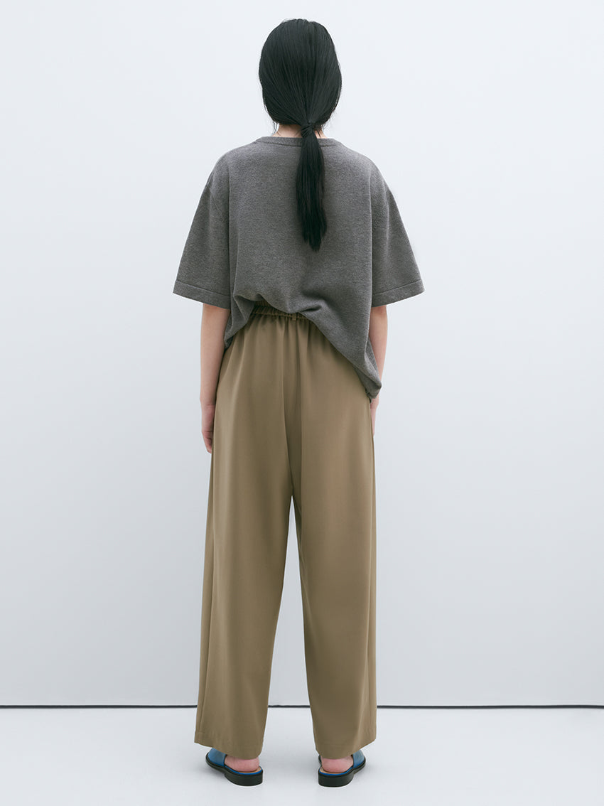 Designed with oversized shape, round neck and short sleeves, it has distinctive design details: hand sewn natural pearls.