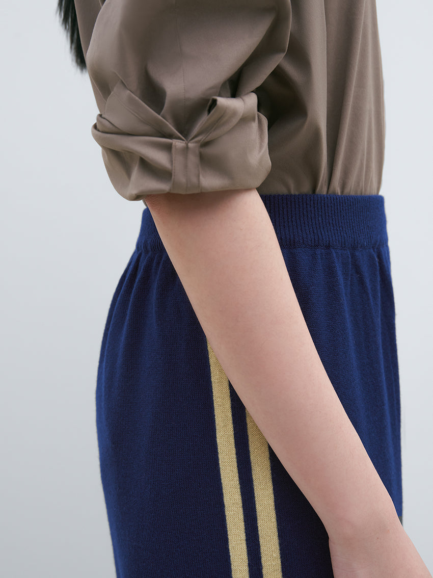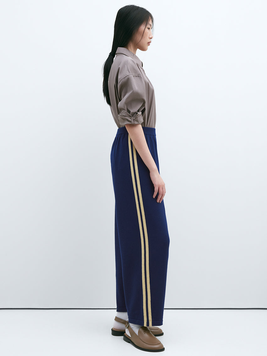 A flattering and comfy shape with elasticated waistband framed by rib trims on the waist and bottom and two contrasting vanilla side stripes.
