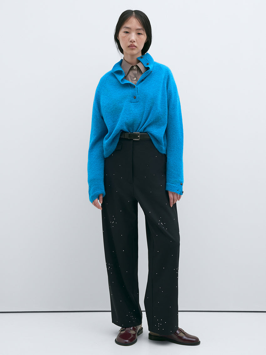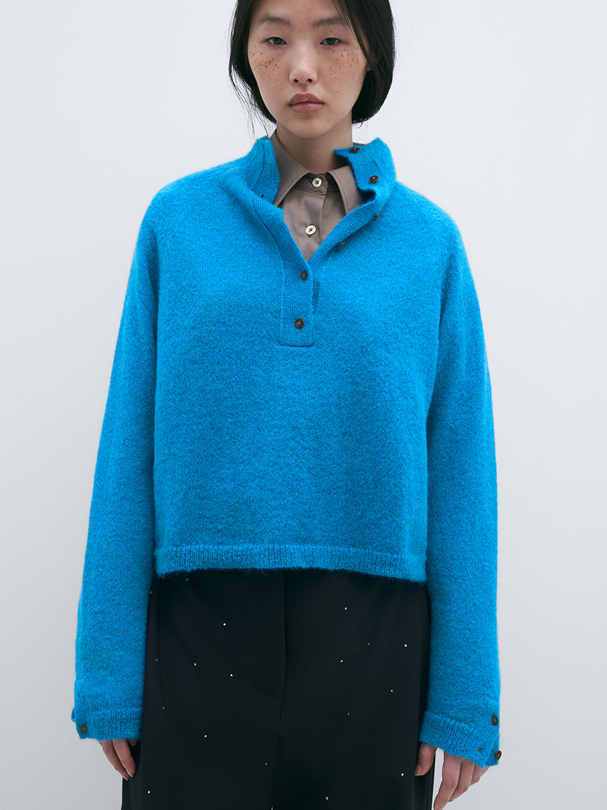 Mohair & Baby Alpaca Polo Sweater Ceruleo