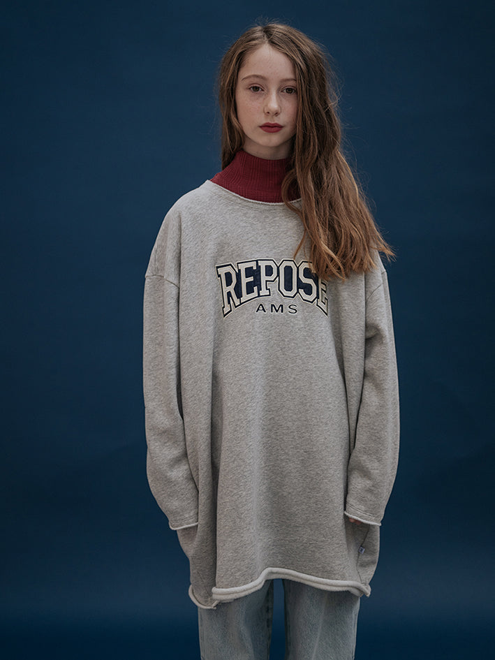 The Cozy Sweat Dress in Grey Melange by Repose AMS features a round neck. And raw edge details along the neckline and bottom hem, creating a relaxed oversized urban look. This comfortable piece comes with a bold college look chest logo materials: 100% organic cotton fleece (brushed on the inside) details: Oversized, relaxed fit Round neckline with raw edge detailing Raw edge finish at bottom hem Bold college chest logo Sustainable and eco-friendly