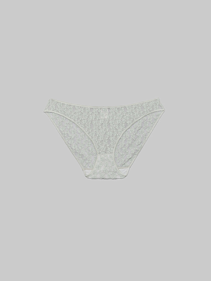 Organic cotton lace pants with exposed seams and elastic trim at waist and leg.