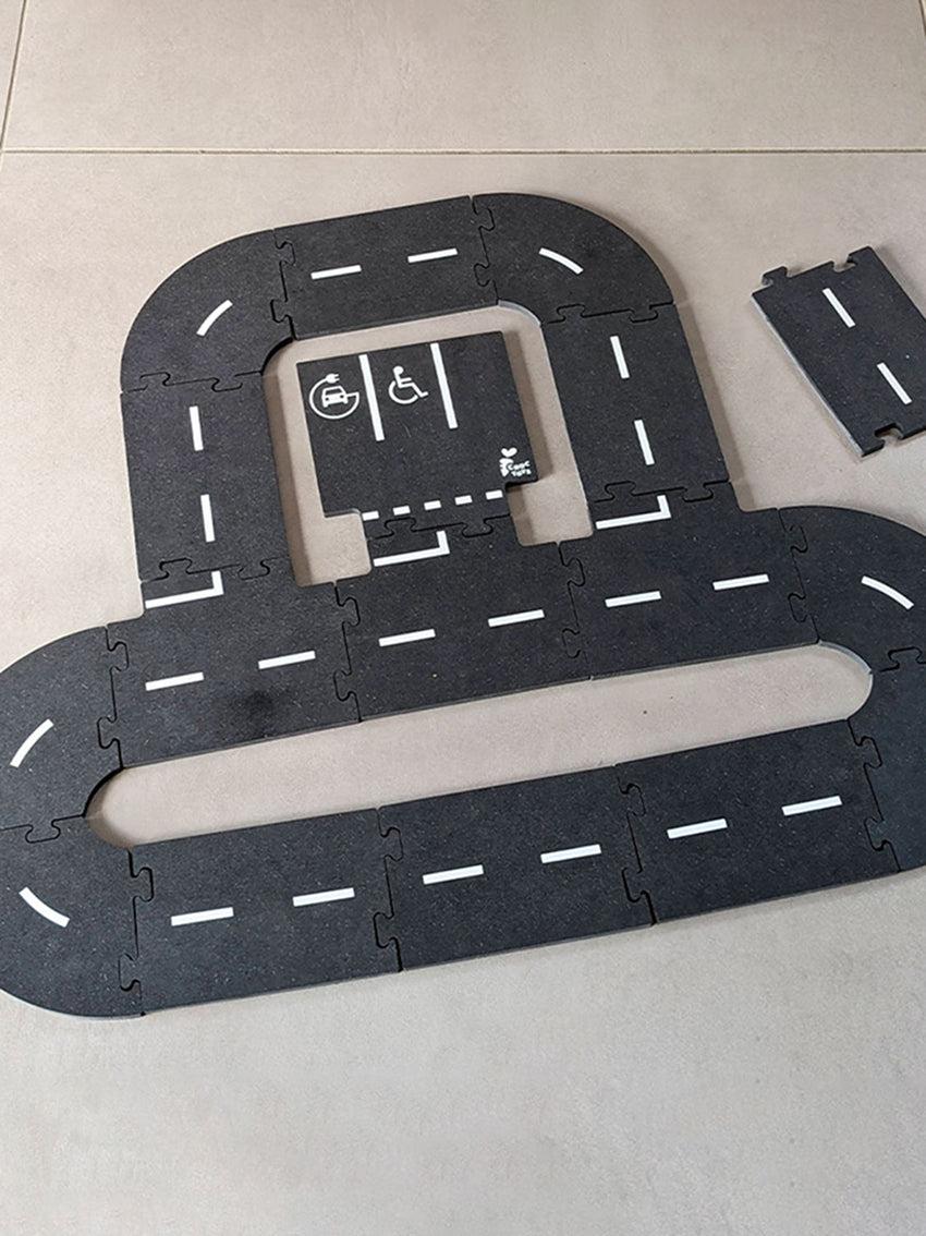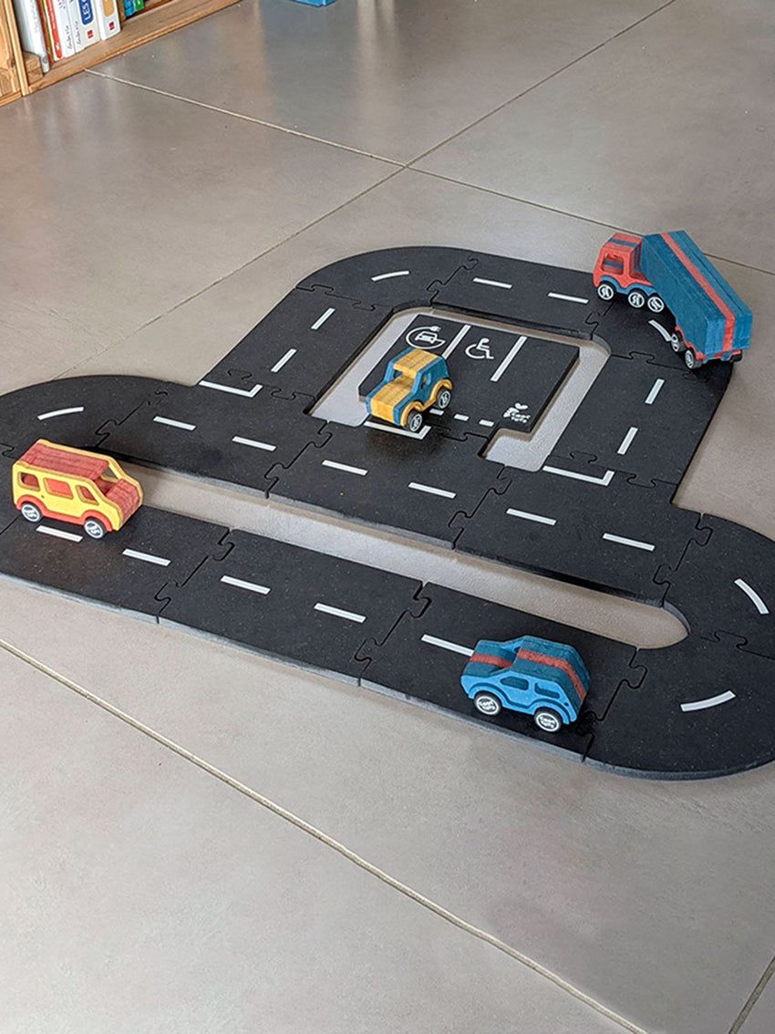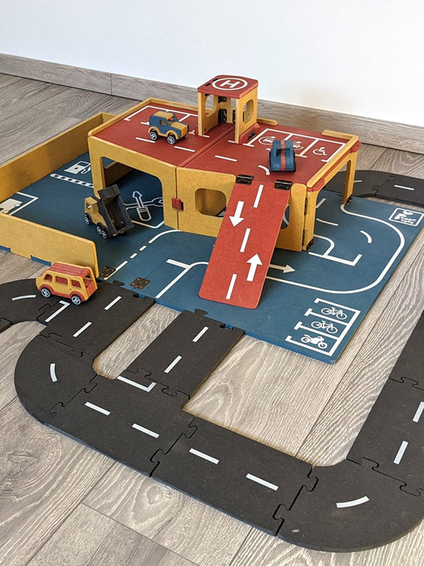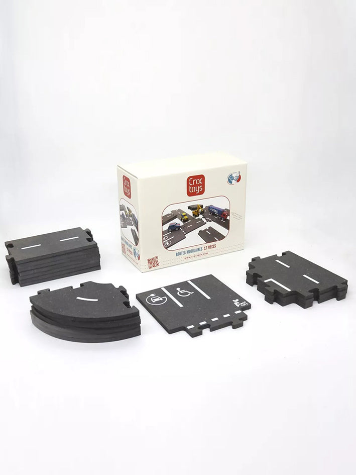 17 screen-printed parts usable in closed circuits and compatible with the CROCTOYS garage.