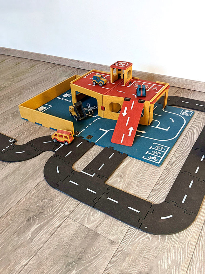 For even more play and creativity, our garage is compatible with our road system. Hours of play guaranteed!