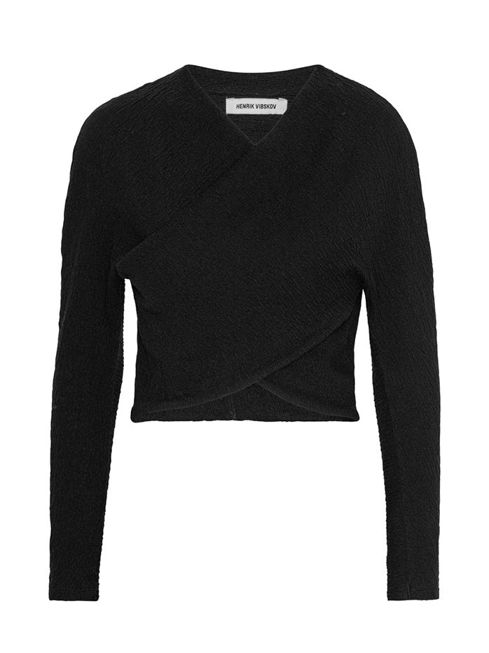 Cross Jersey Blouse in Black from Henrik Vibskov's AW24 Studio Collection 'Daily Chewing Gum Therapy' Highlights - black - wrap cross front detail - long sleeve Made in Portugal