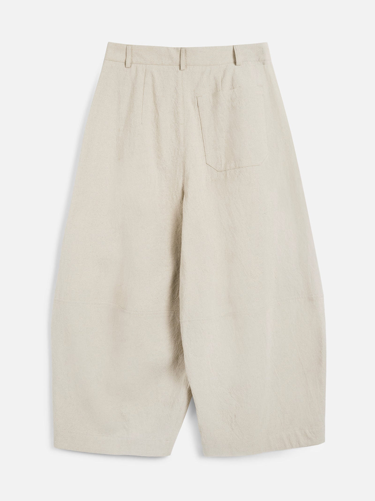Front centre pleats add soft tailoring, while the relaxed, arc-shaped silhouette creates a modern, sculpted drape through the leg. A split-leg panel and deep hem enhance the fluid shape, giving movement and quiet statement to every step.