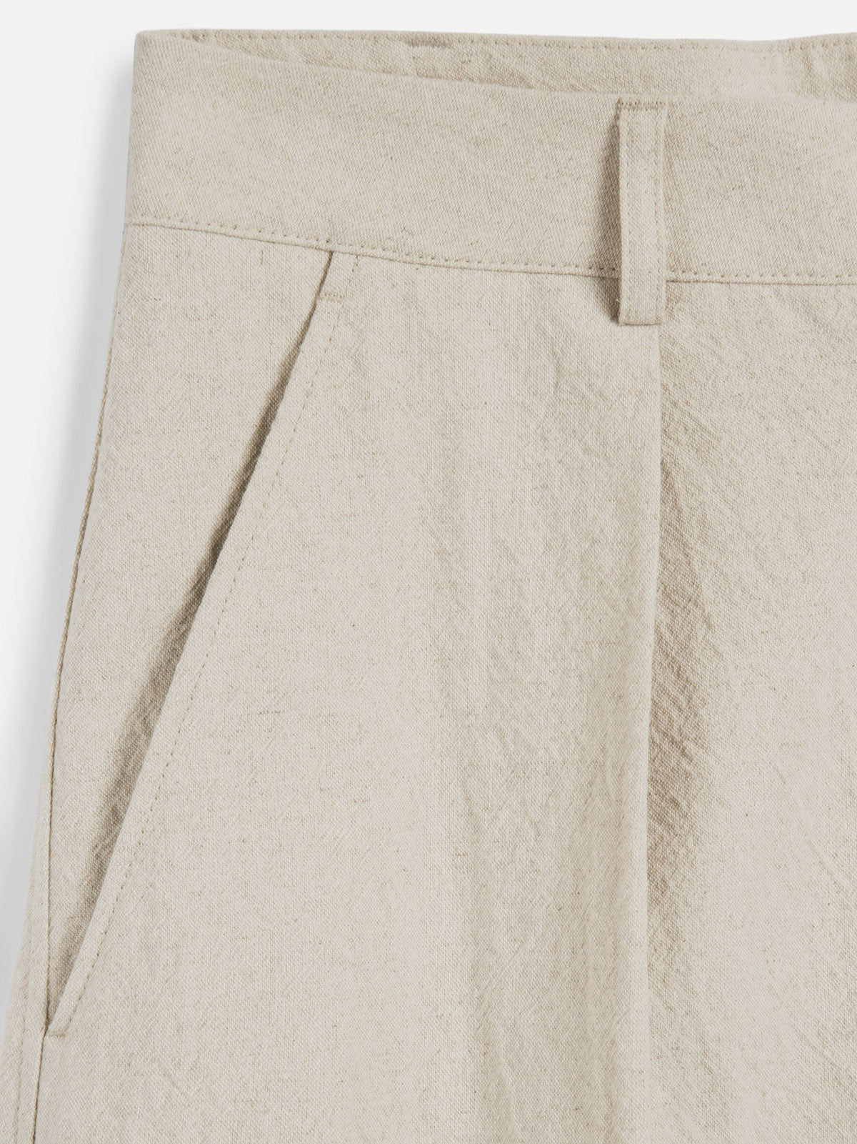 Elevate your everyday wardrobe with our wide-leg, high-waisted trousers—designed to balance structure and ease. Crafted from a premium Japanese cotton–linen blend, the fabric features a subtly textured canvas finish that feels breathable yet substantial.