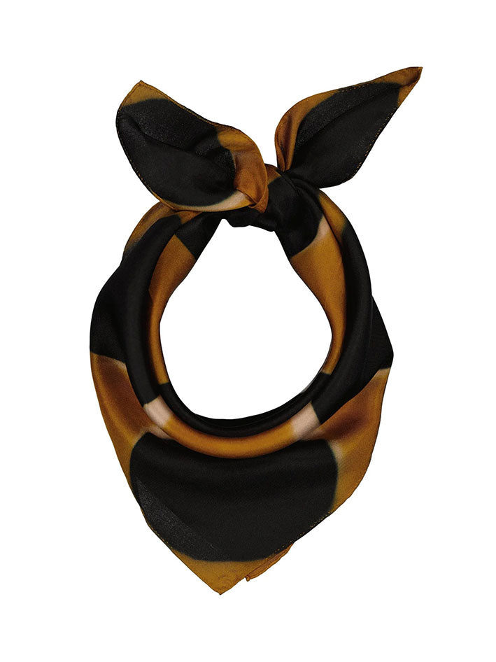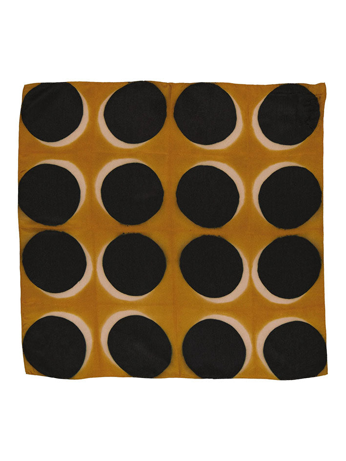 ÉCLIPSE, hand dyed and graphic Silk Bandana, by Denovembre with pigmented colors. The pattern is obtained by folding and dyeing "Itajime" process.
