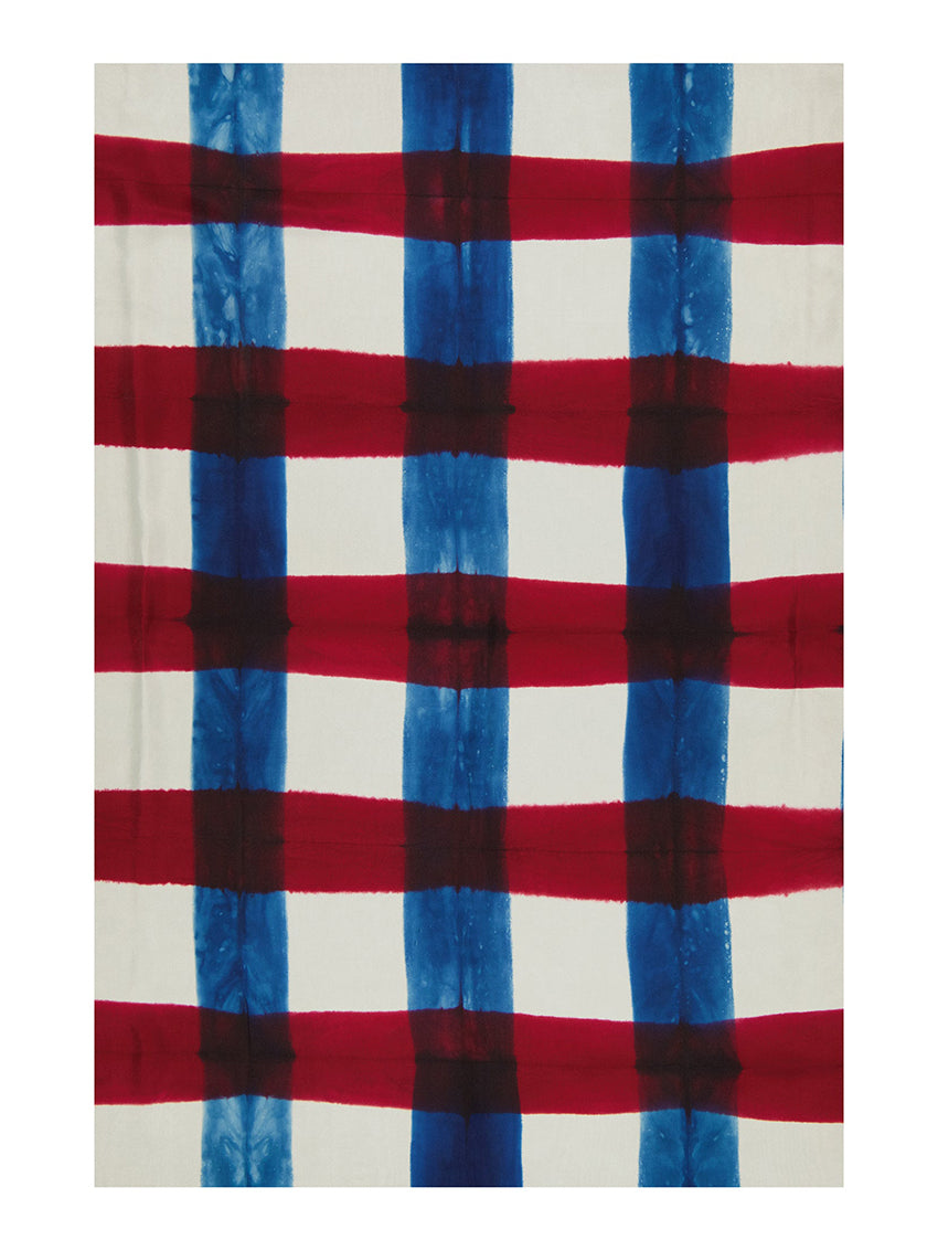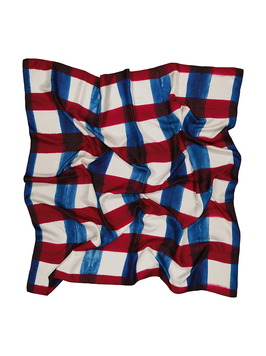 The Denovembre “TEMPO” is a large silk square, with contemporary checkered design.