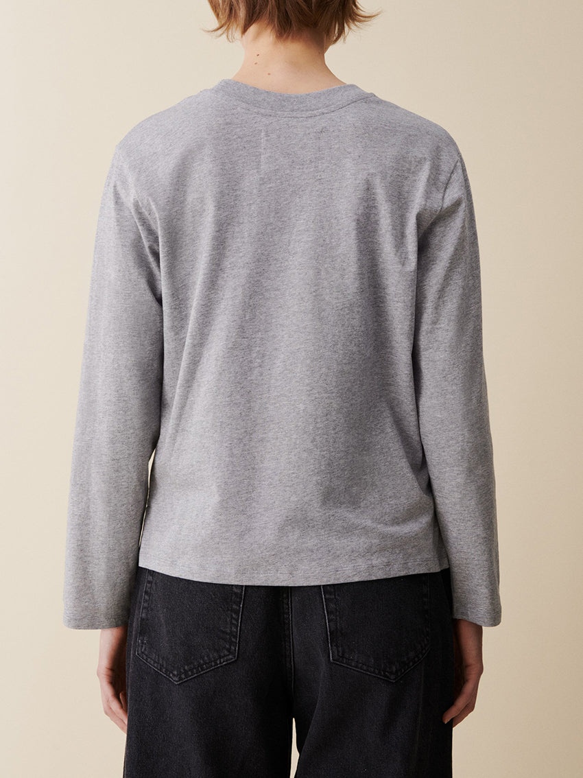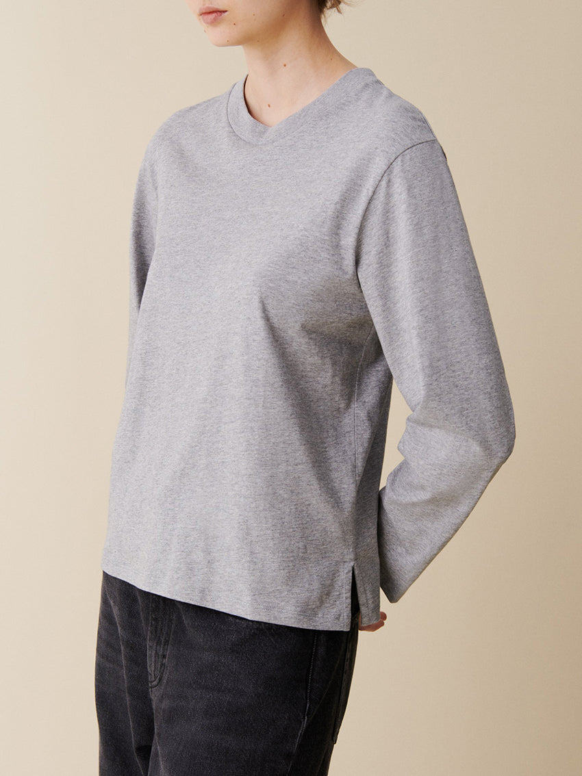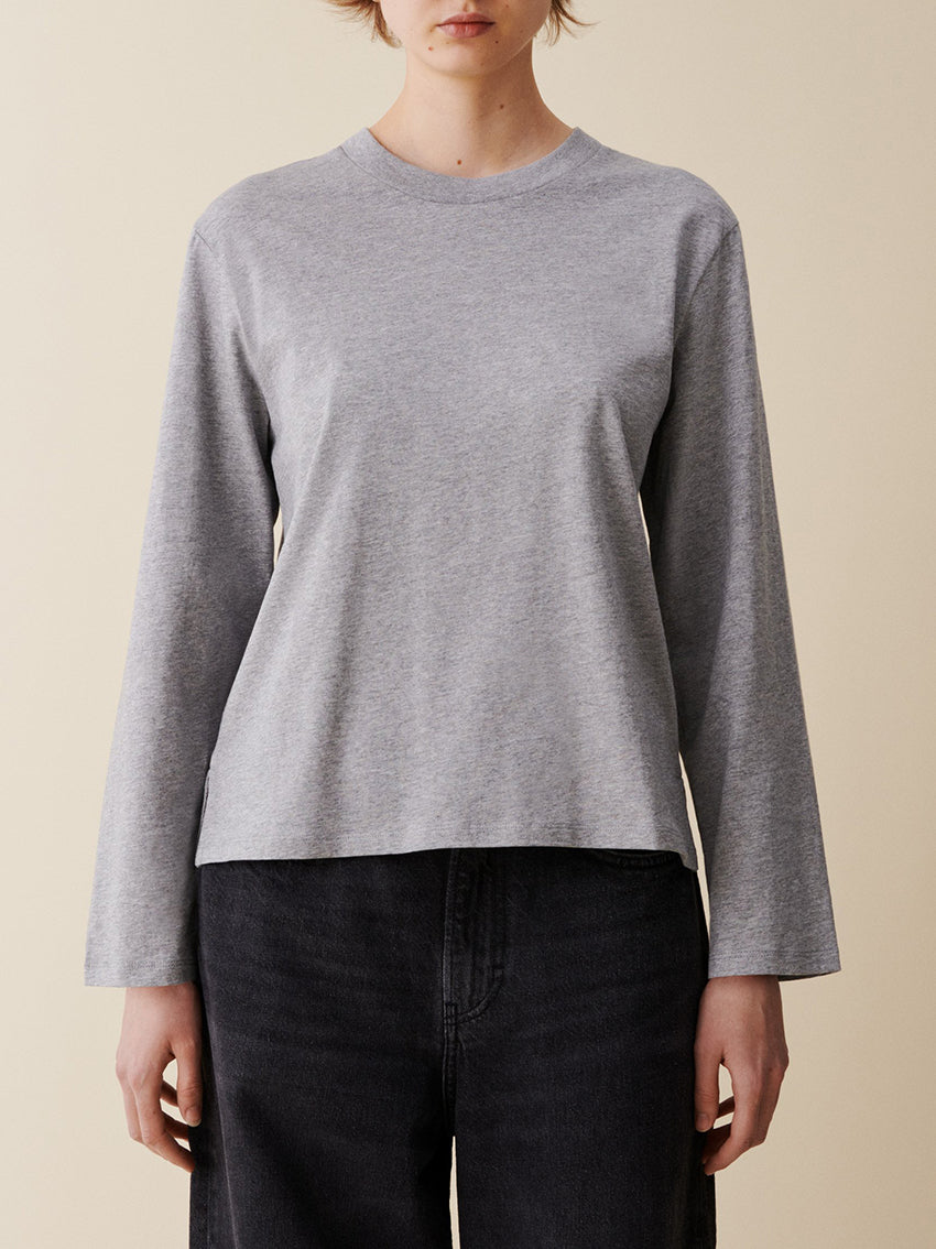 Didry is a long-sleeved mid-weight organic cotton jersey with a slightly raised crew neck and herringbone side slit detail.
