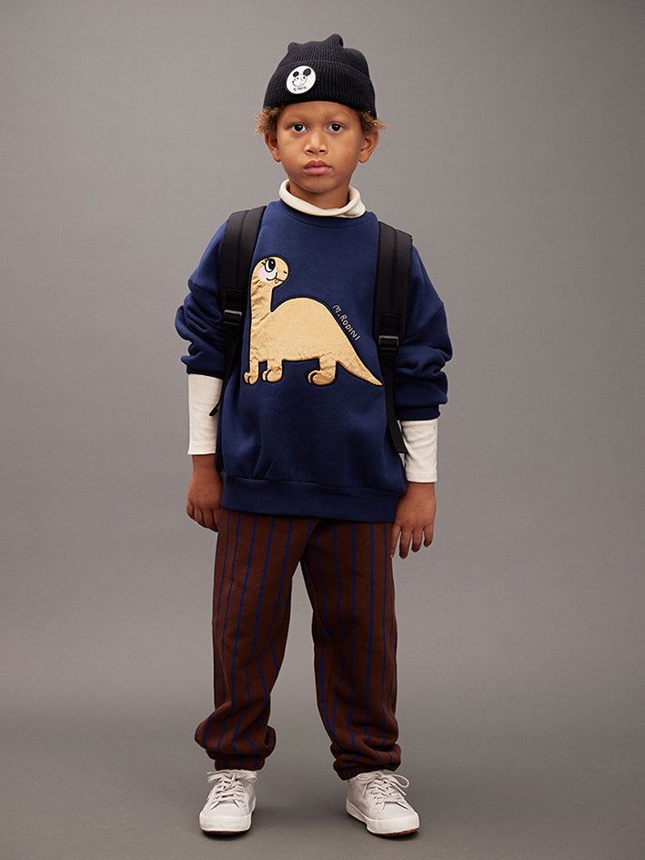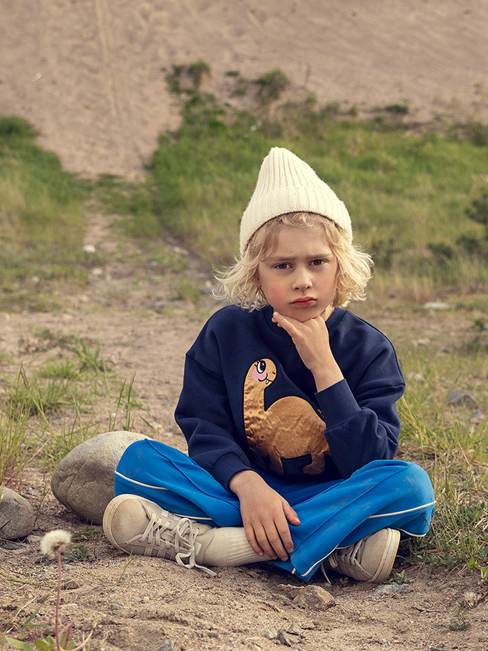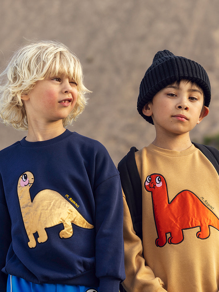 Mini Rodini Dinos Application Sweatshirt Blue made in 100 % GOTS-Certified organic cotton.