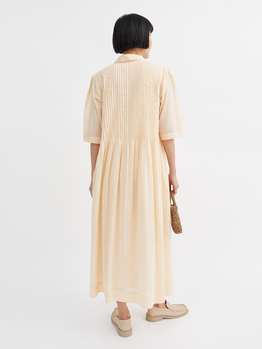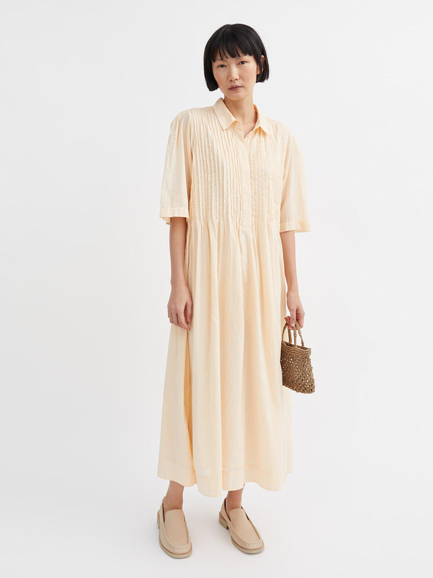The Skall Studio Dot Shirtdress in Light Peach is a voluminous midi-dress made in soft, organic cotton.