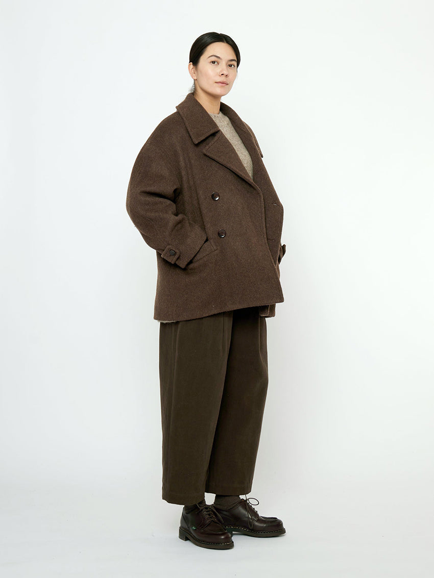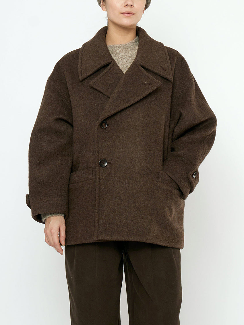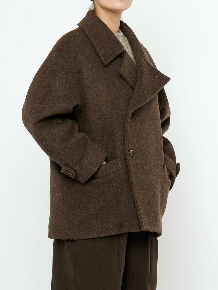 Double Breasted Short Wool Coat Walnut