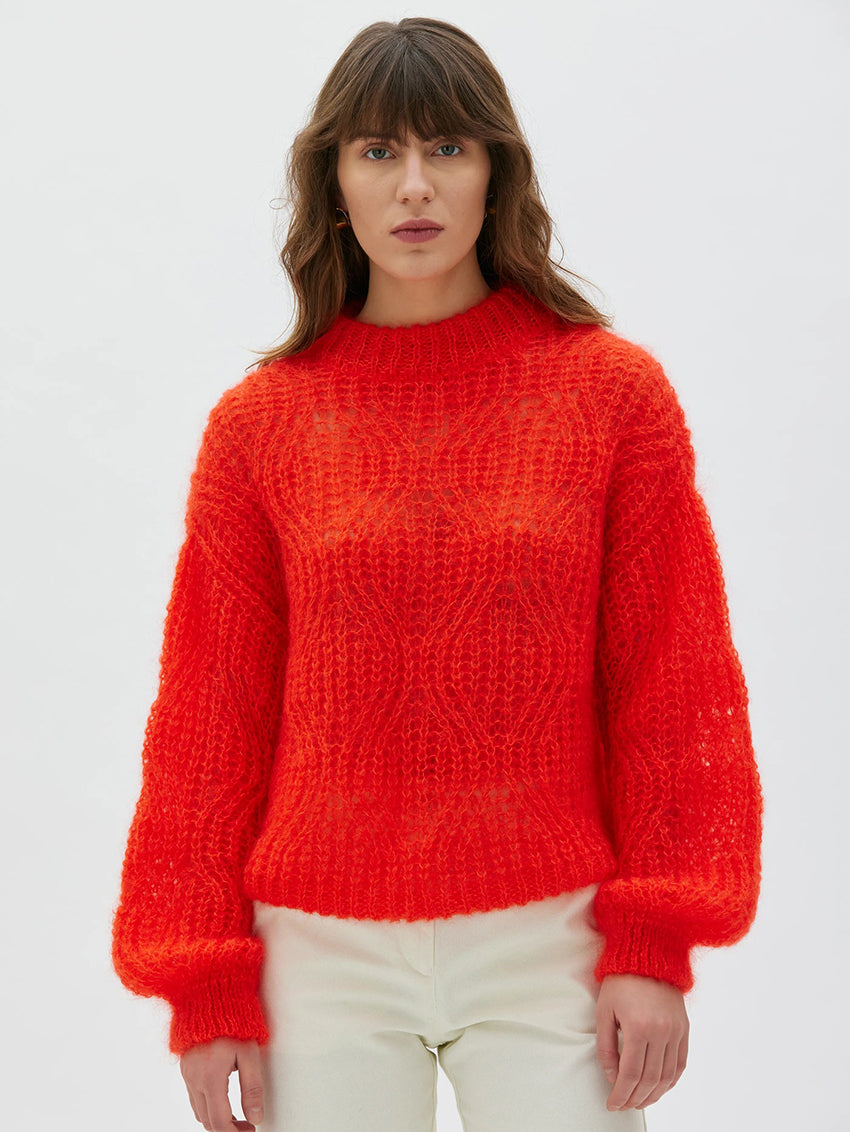 Dove Lace Knit Mohair Silk Sweater Poppy Red
