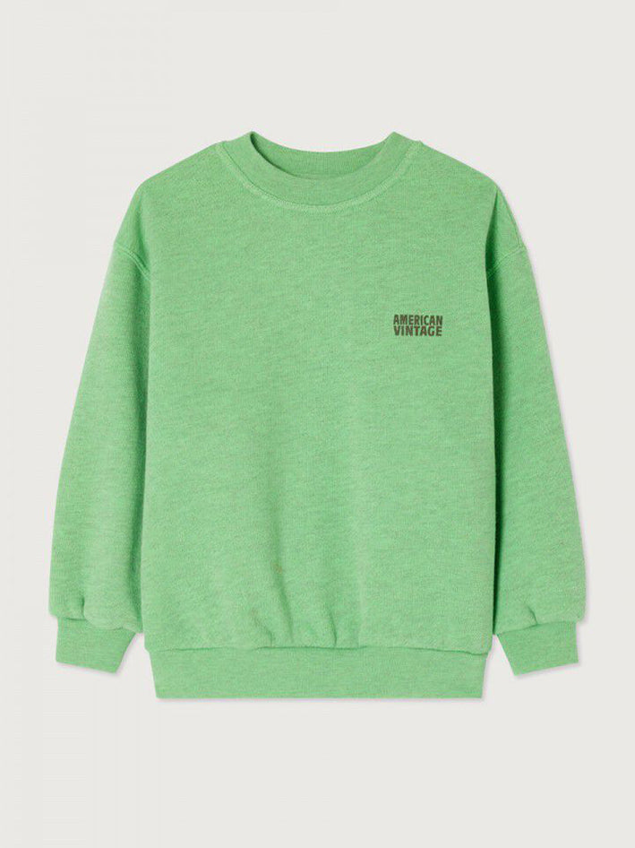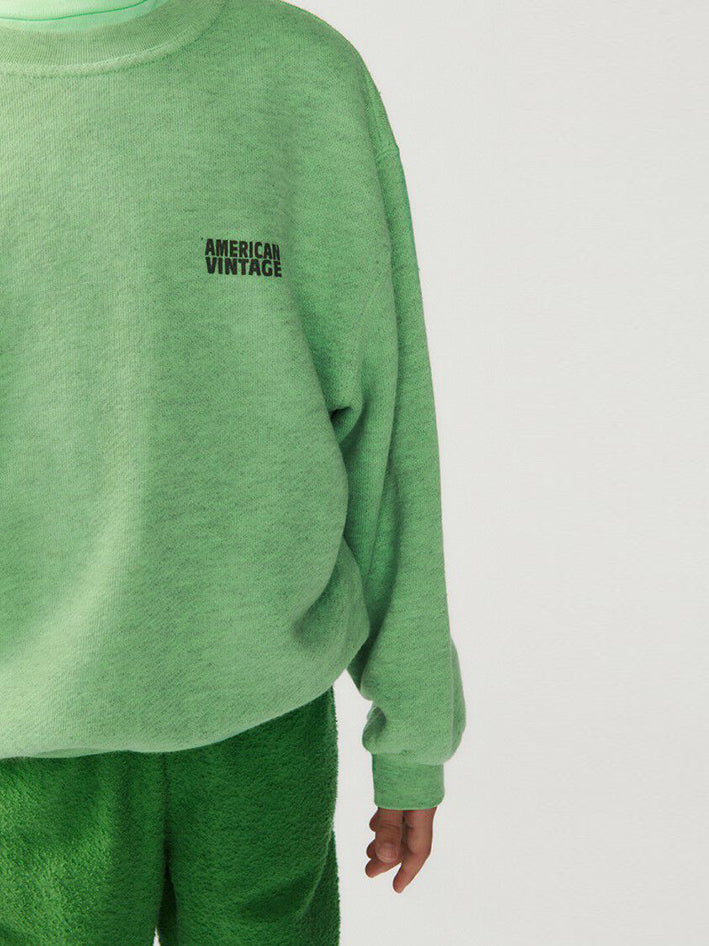 Long-sleeved American Vintage Doven Sweatshirt in Overdyed Parakeet with a crew neck 88% COTTON* (*76% ORGANIC FIBERS), 12% POLYESTER