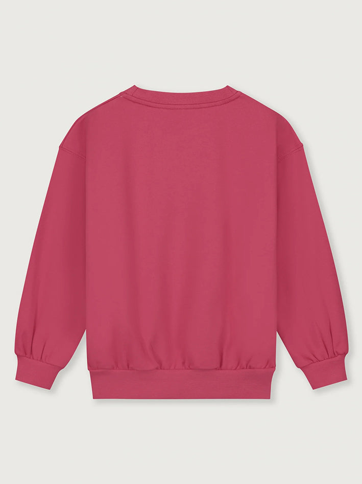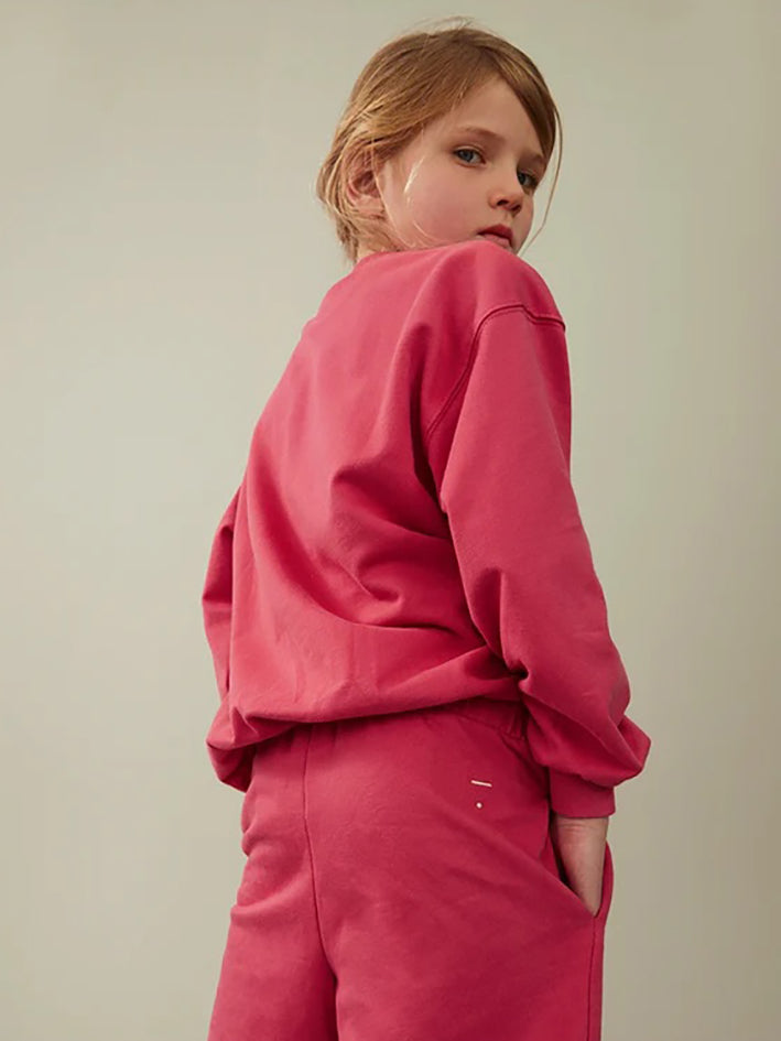 This unisex Gray Label Sweater in Cherry is made from a soft organic cotton fleece. The sweater features Dropped Shoulders, thick long sleeves and ribbed cuffs, hem and neck. 100% Organic jersey cotton Made in Turkey