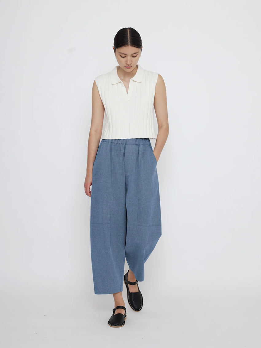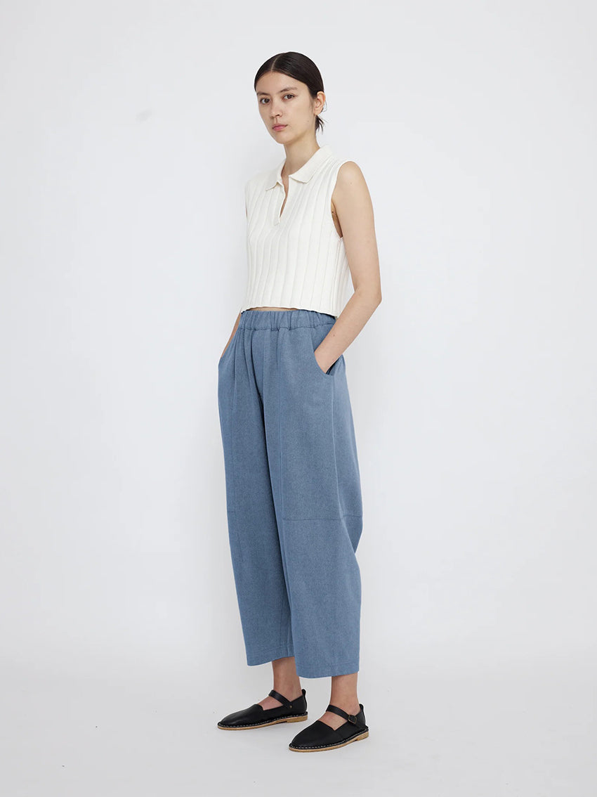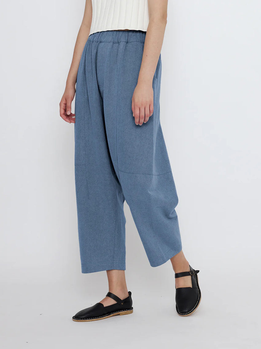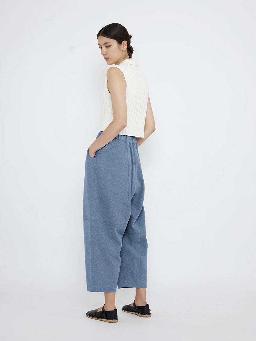 Elastic Panel Barrel Trouser Soft Denim Faded Blue