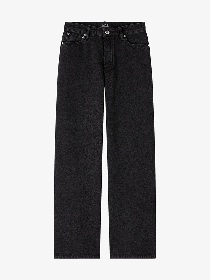 The A.P.C. Elizabeth Jeans in Stonewashed Black is a wide-leg, high rise, hip-hugging, straight cut jeans with a 70's spirit.
