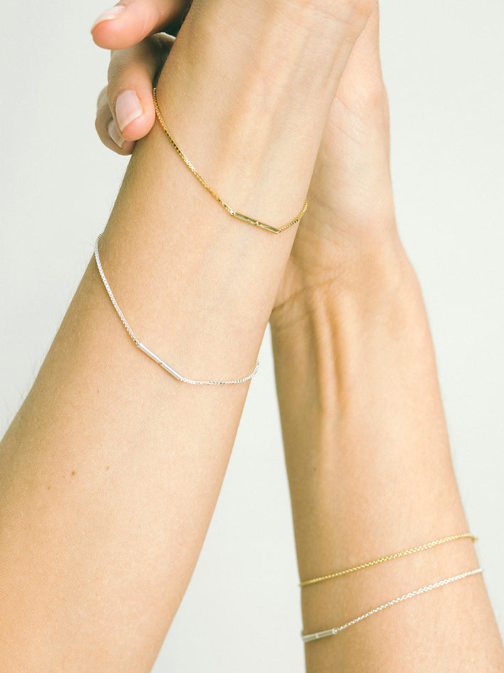 Simple and delicate chain-bracelets in Sterling silver. Variations cubic silver. Cubic for box chain, a chain made out of little cubes. Made in Munich.