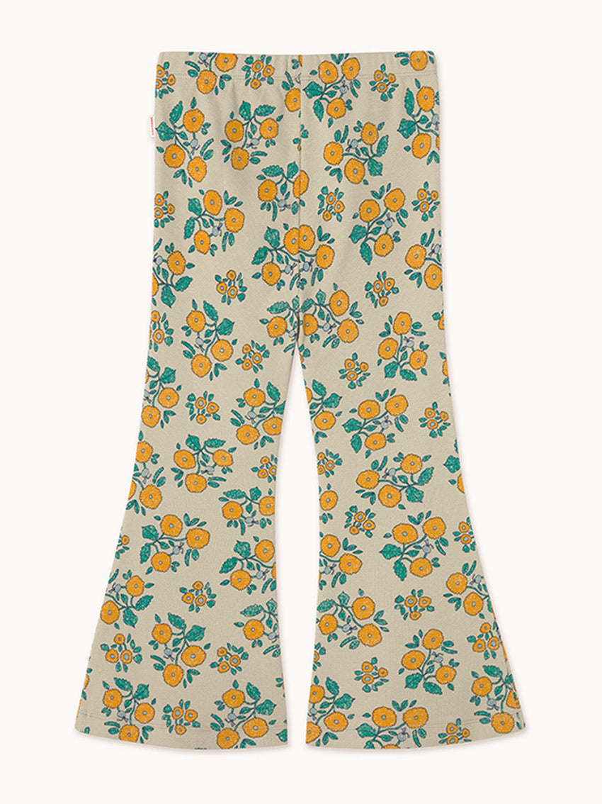 A midsummer flower feast. This is crafted from a soft cotton blend fabric. This Flowers allover print flared Pants in Dark Vanilla by Tinycottons offer the perfect blend of style and comfort. It features a with an elasticated waistband. Carefully designed in Barcelona, crafted in China in BSCI certified factories, following responsible and sustainable practices every step of the way. Composition: 95% organic cotton, 5% elastane