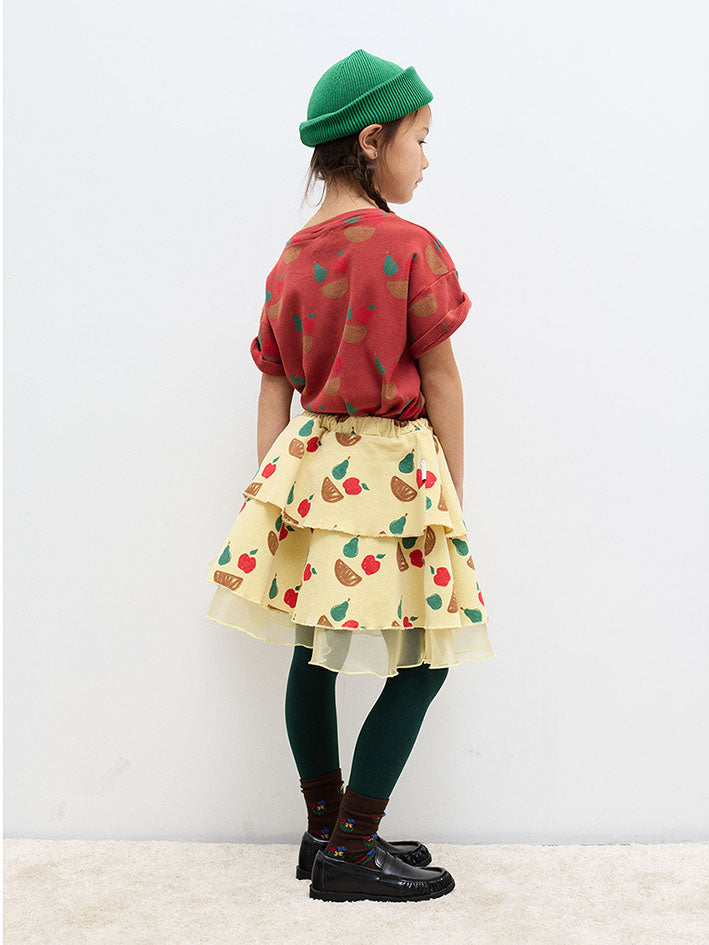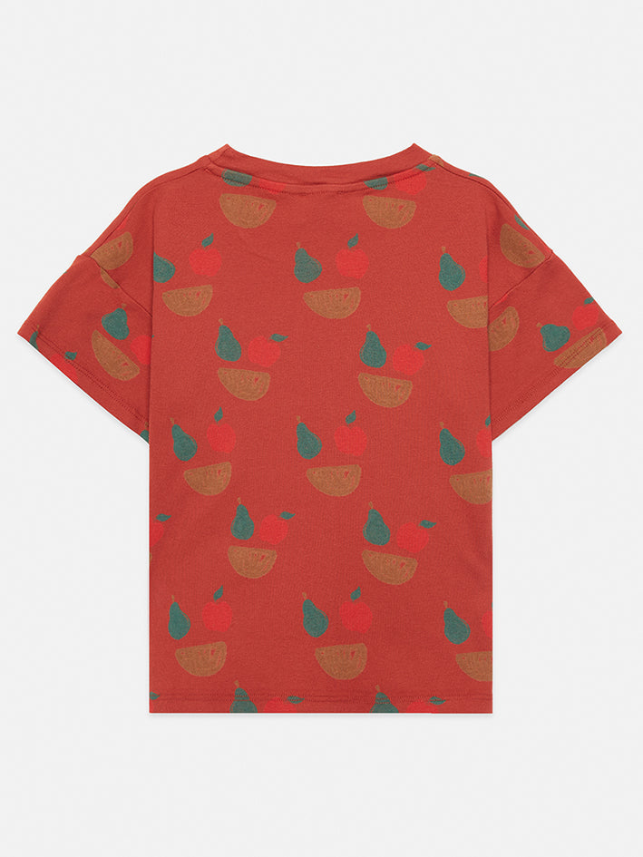 Weekend House Kids Fruity Allover Clay -colored T-Shirt features a playful all-over fruit print, perfect for sunny days and everyday adventures.