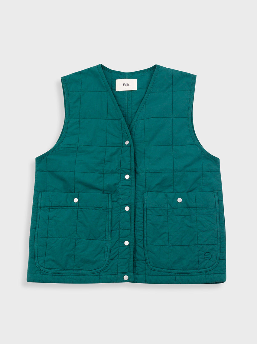 Folk design the Gilet in Vintage Green to have a casual & oversized.