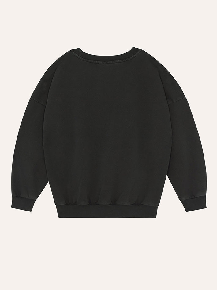 Retro vibes in this Black Washed Sweatshirt with bands and patch on chest from The Campamento. With oversized fit and rib in cuffs and neck for more comfort it is perfect for winter outfits. Long sleeves and oversized fit. Rounded neck in rib quality for more comfort. Fleece 100% cotton. Made in Portugal.