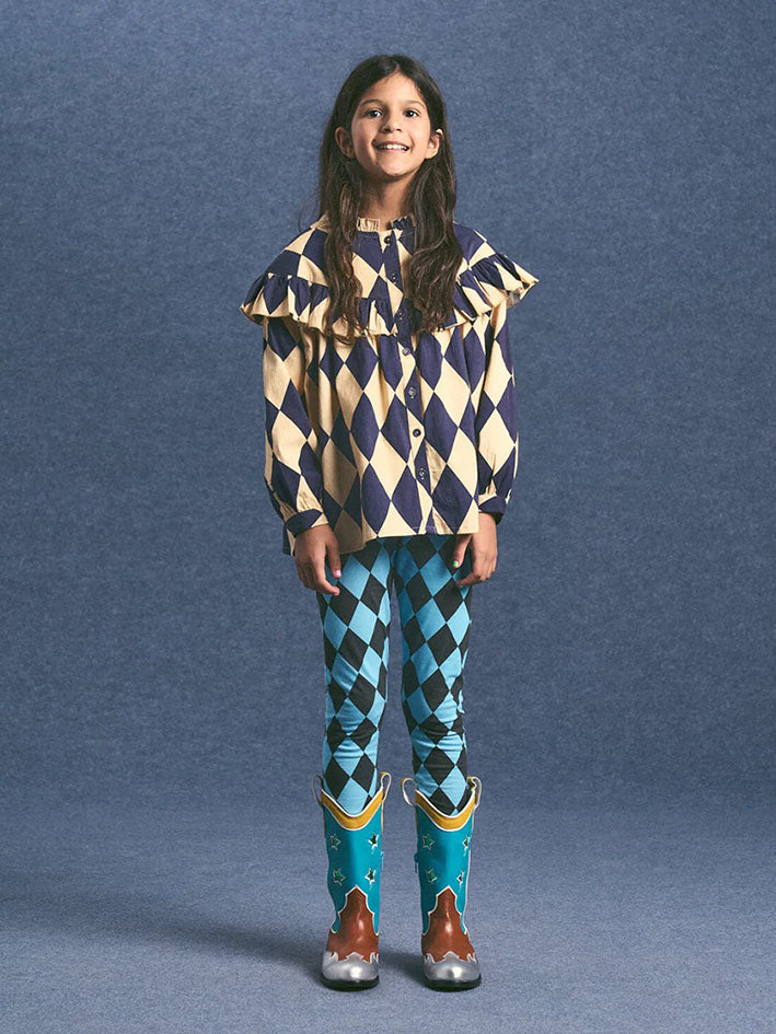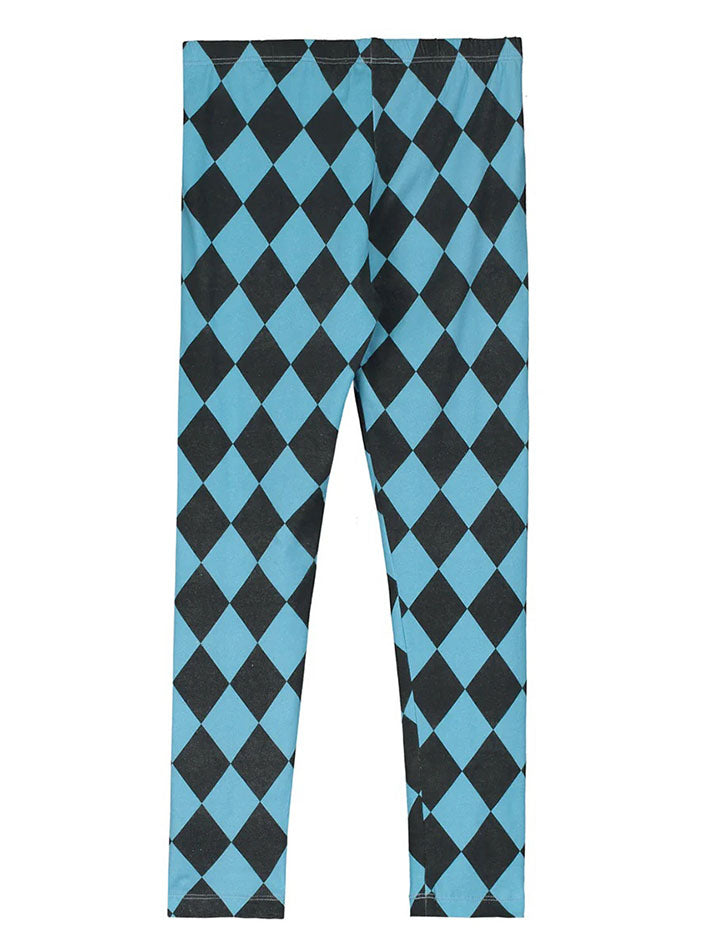 The Harlequin Leggings in dark Grey and Blue by Maison Mangostan feature a bold diamond shaped all-over print and have an inner elastic waistband for better comfort. Composition: 95% Organic Cotton, 5% Elastane This item is normally sized, we suggest you select your regular size.