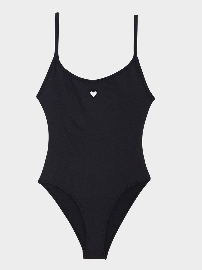 Scoop neck. Elastic trim at straps and hem. Thin straps.