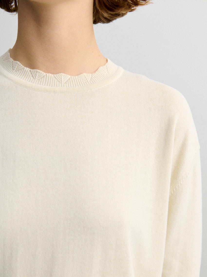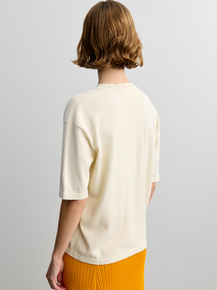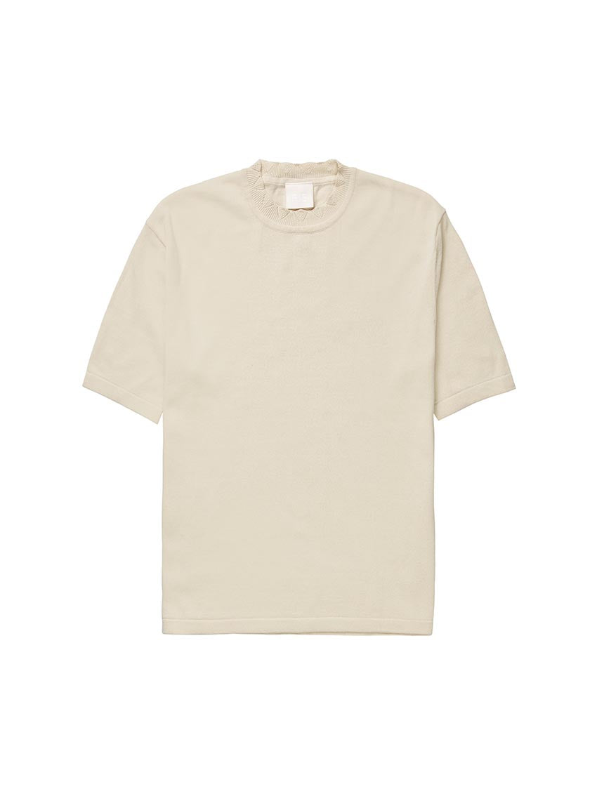 Knitted in a firm single jersey, this Oversize Tee in Ecru by Fub is detailed with clean folded hems and a ribbed pointelle neck trim with a subtle lace edge.
