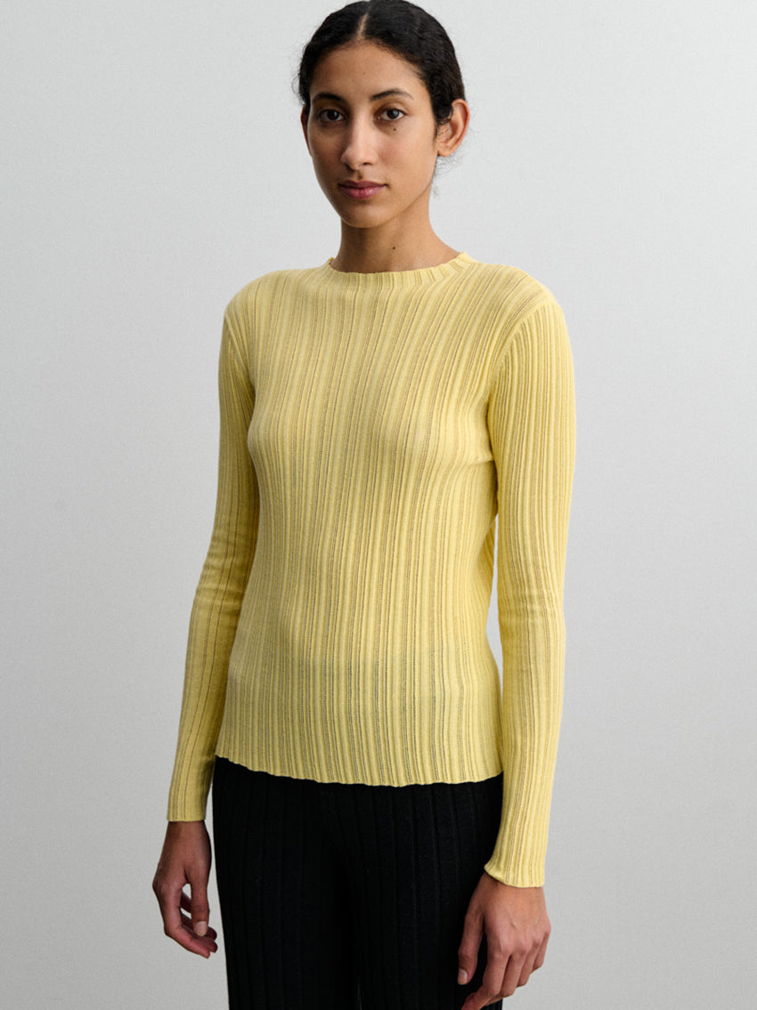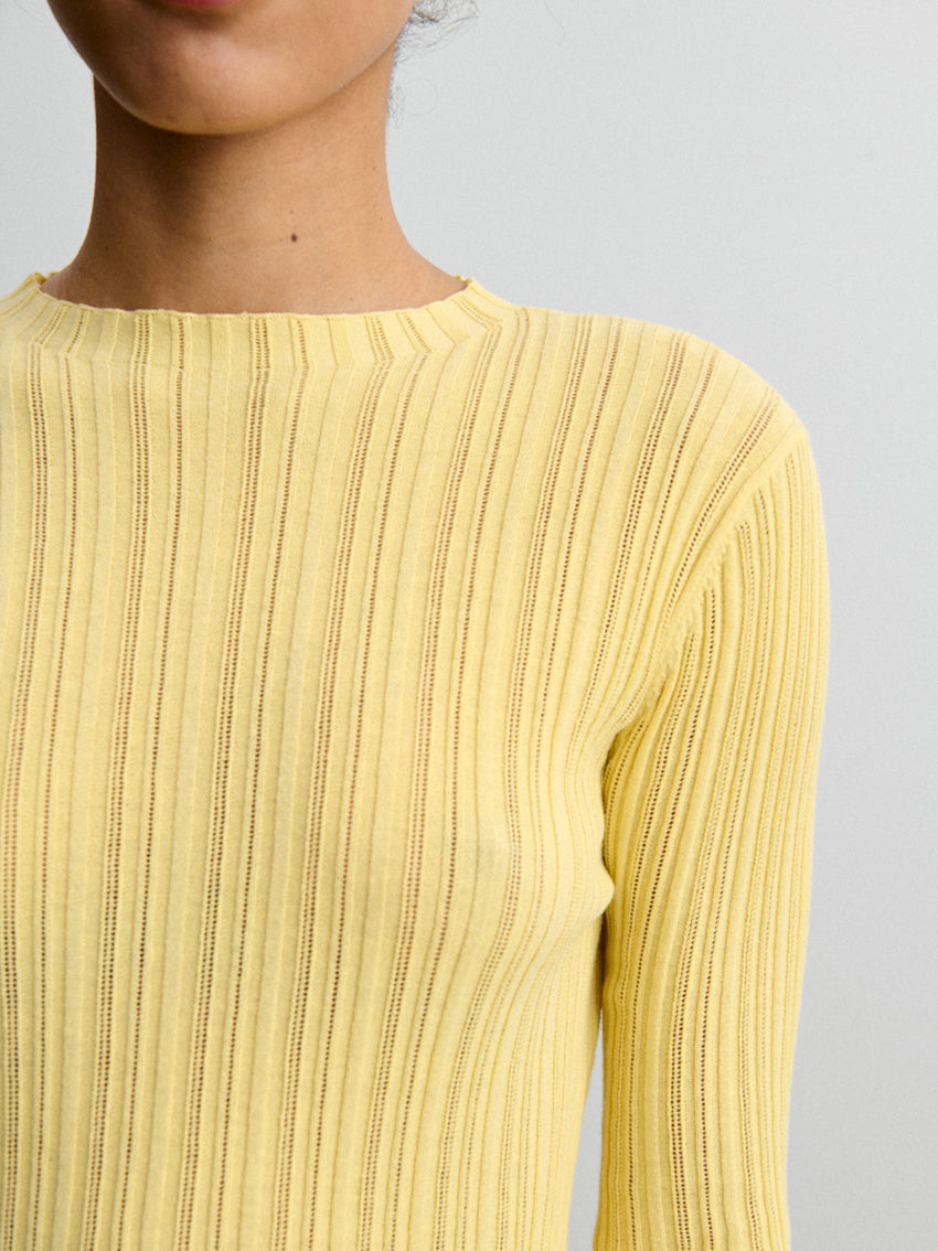 Knitted in a fine pointelle Rib structure, this long-sleeved Top in Vanilla by Fub has a straight slim fit.