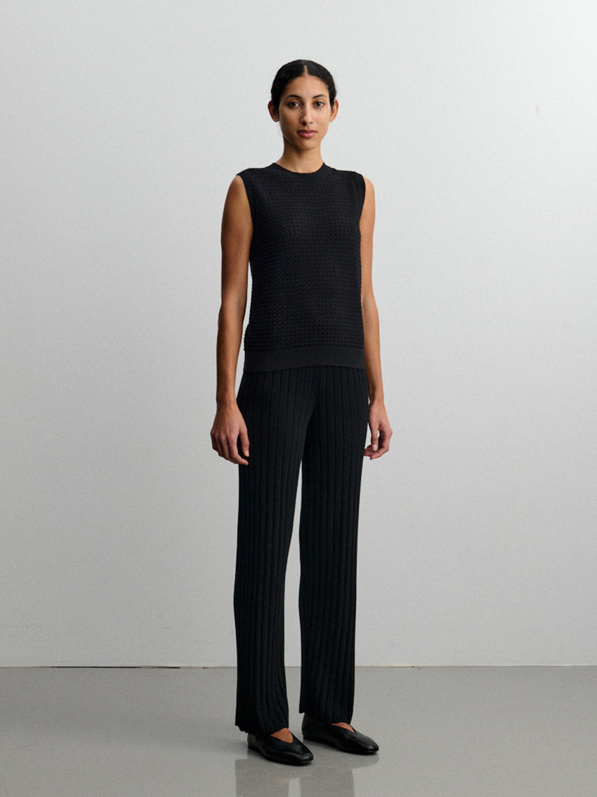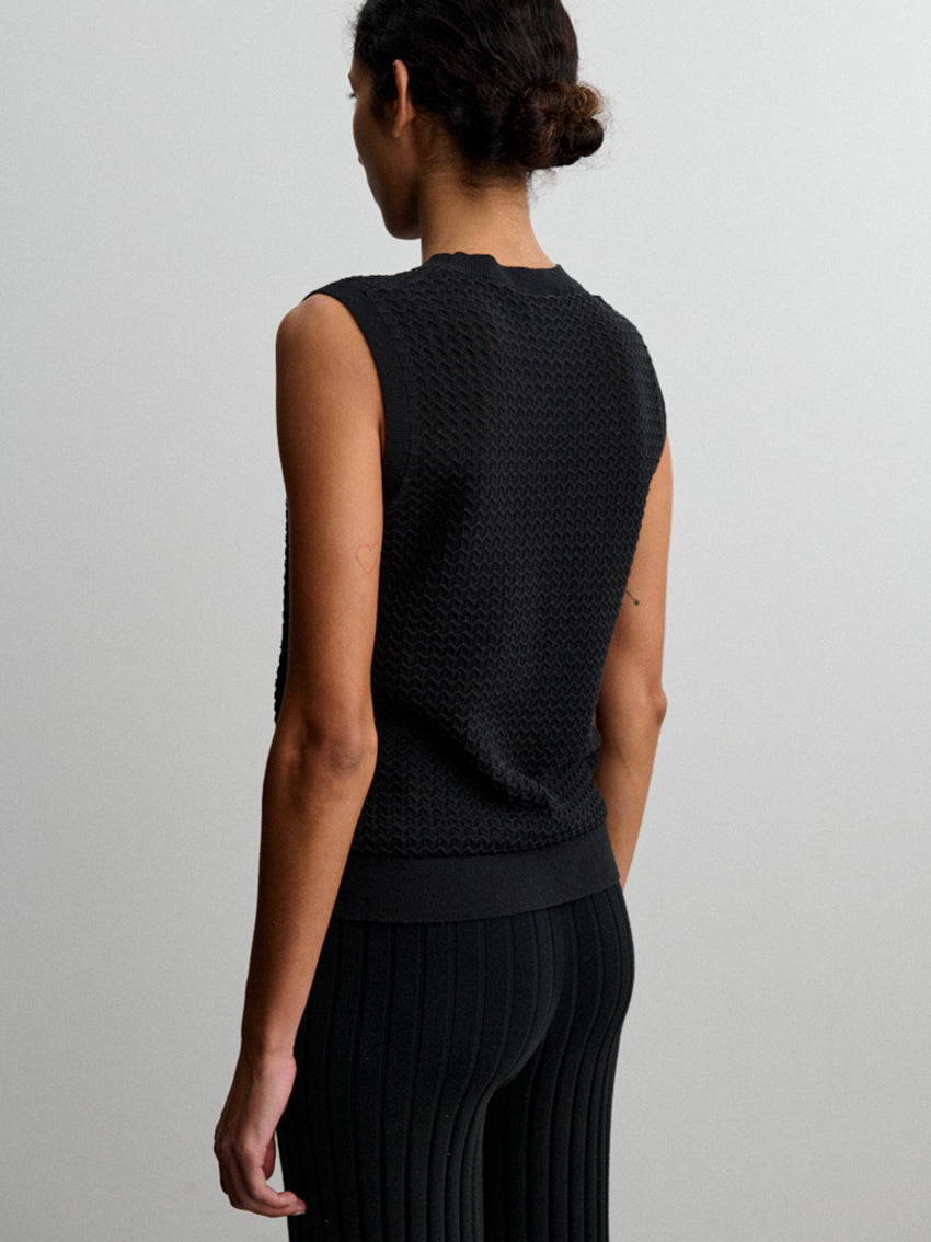 Knitted in a decorative pointelle structure, this sleeveless Top in Black by Fub has a regular fit.