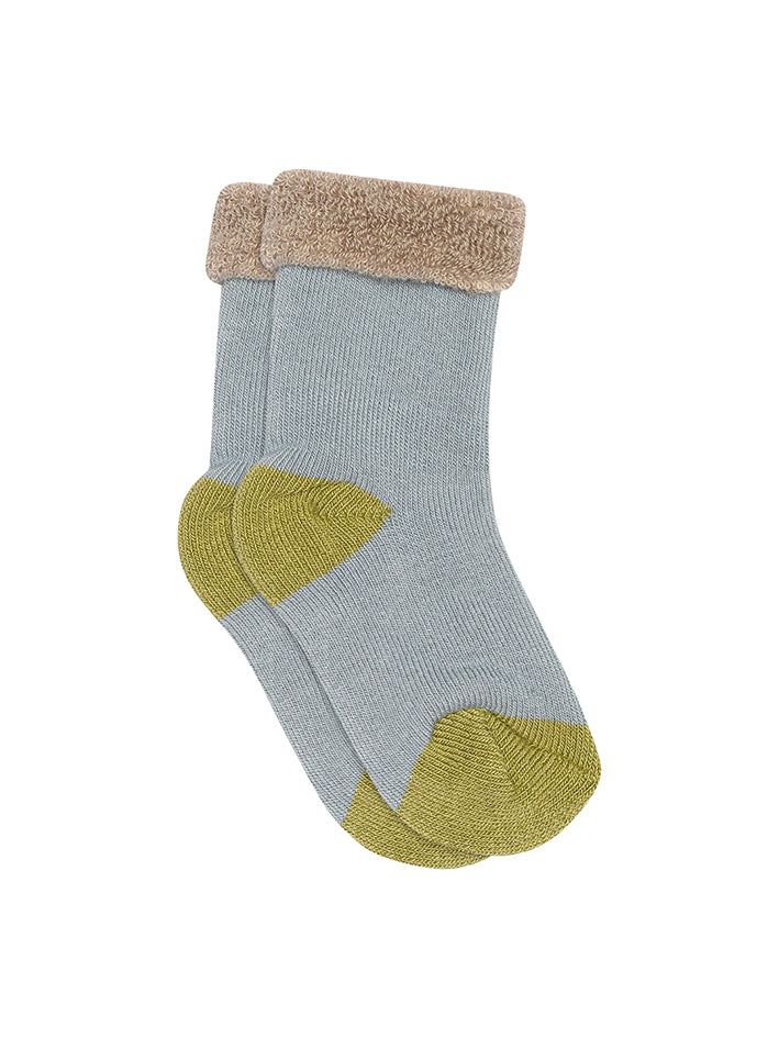 Classic Indy Baby Socks in Dusty Blue with contrasting colors from MPkids. Knitted in cotton with a soft cotton terry quality on the inside. The socks have a heel, toe and folded edge in contrasting colors. To ensure the best possible fit, the socks have an anatomically correct heel with a 90° angle and a folded edge at the ankle. The socks have a reinforced heel and toe. * Soft inside due to cotton terry * Reinforced heel and toe * Anatomically correct heel for optimal fit * Designed in Denmark - Made in Latvia * OEKO-TEX® STANDARD 100 CERTIFIED