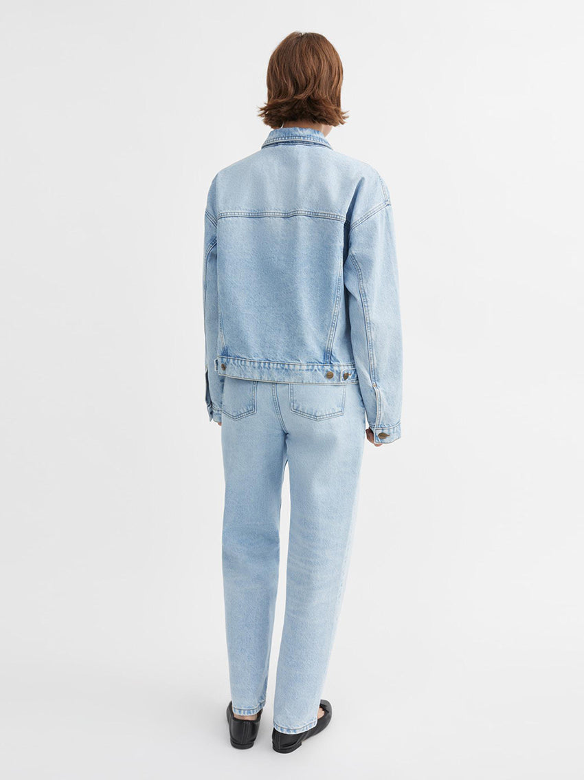 The Inger Denim Jacket Light Bllue is a denim jacket made in heavy organic cotton from Skall Studio’s GOTS certified denim line.