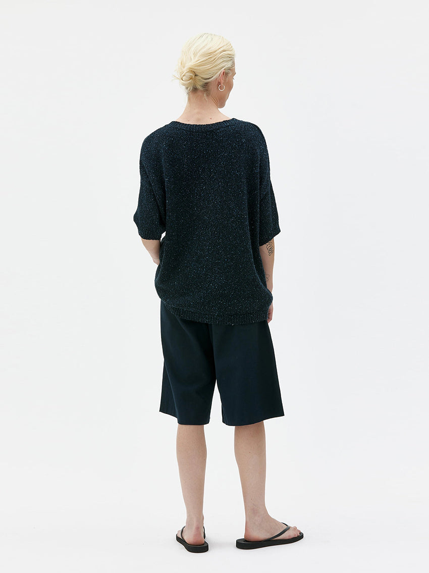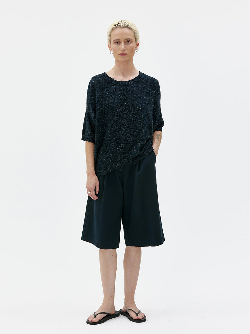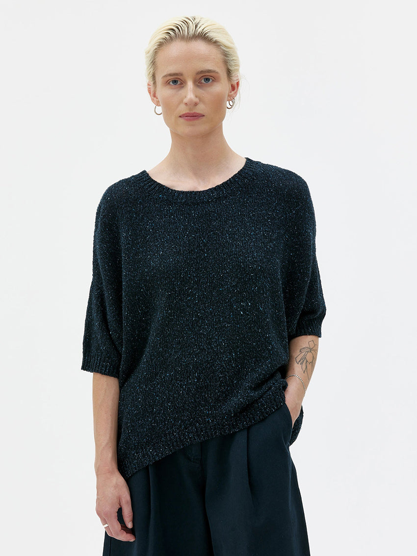 Ivana Cotton Silk Linen Slub Yarn Sweater Deep Night Blue Noil